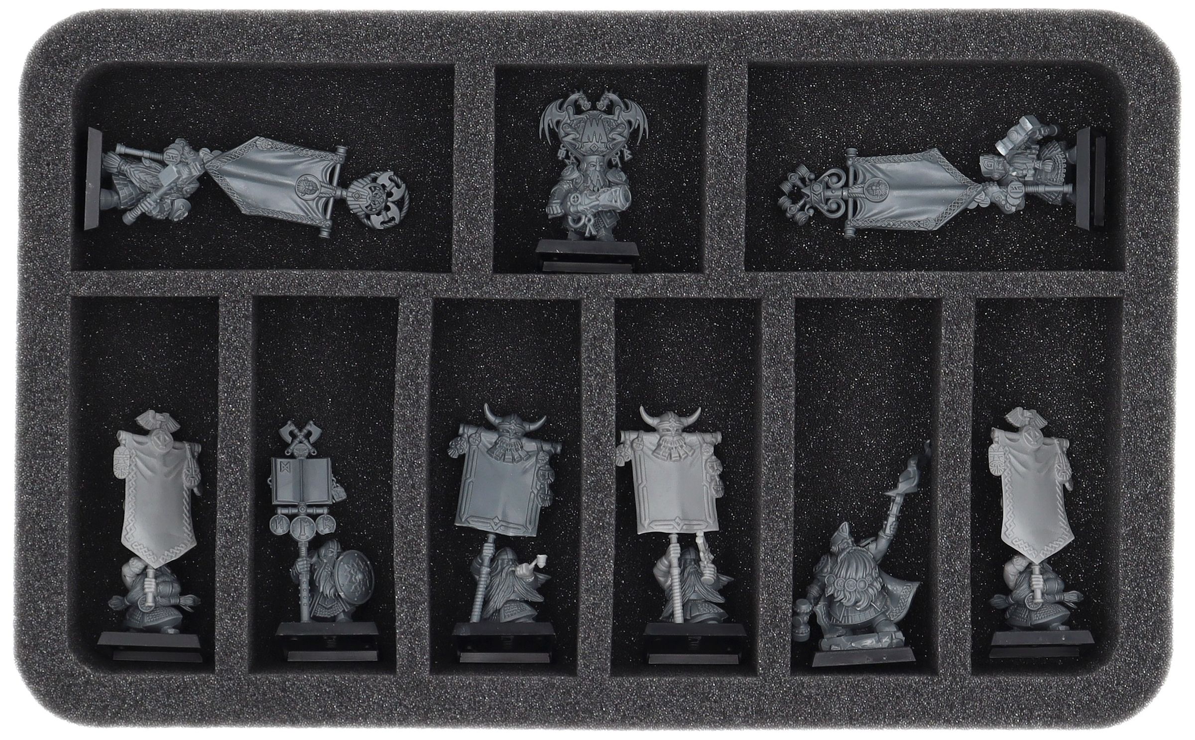 - 1 x HS040A052 – foam tray with 9 compartments for e.g. Dwarf Warriors, Dwarf Quarrelers, Dwarf Ironbreakers, Dwarf Hammerers, Dwarf Slayers