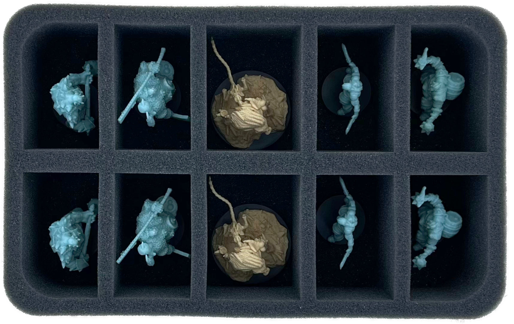 - 1 Half-Size foam tray with 10 compartments for bulky models like Ironskull Knights, Ironskull Deathriders, Ice Shelf Polar Bears and Grimfang Orc Kings (HSBE070BO)