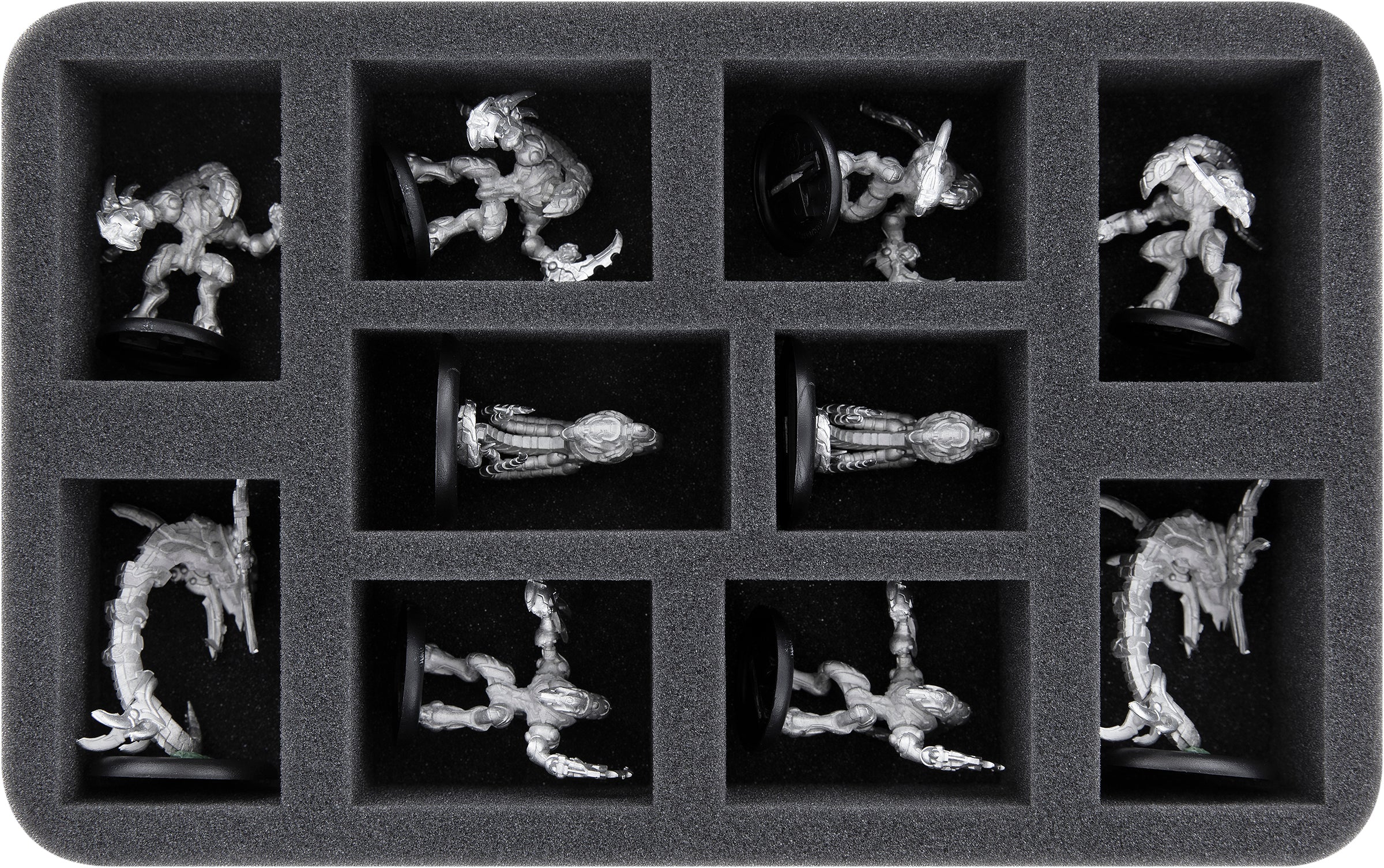 - 1 Half-Size foam tray with 10 compartments each, for Small and Medium Base miniatures (HSLM050BO)