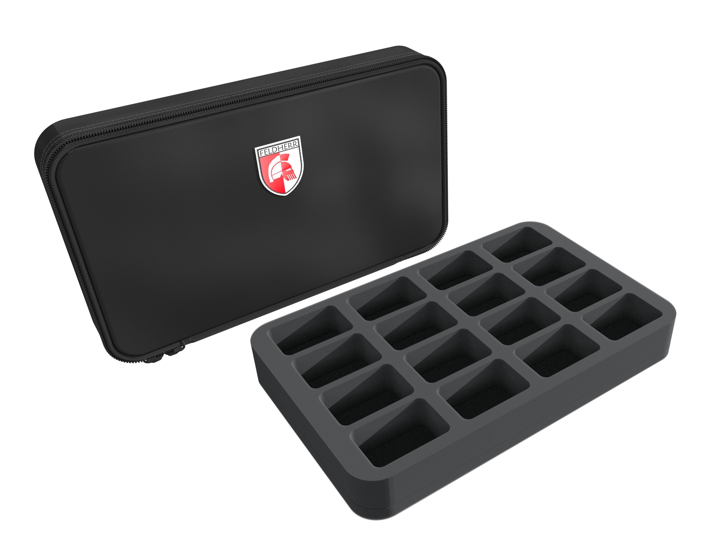 In this compact Feldherr MINI MINUS bag your miniatures are optimally protected. In the custom-made Feldherr foam tray, you can safely transport up to 16 warrior models to the slaughter.