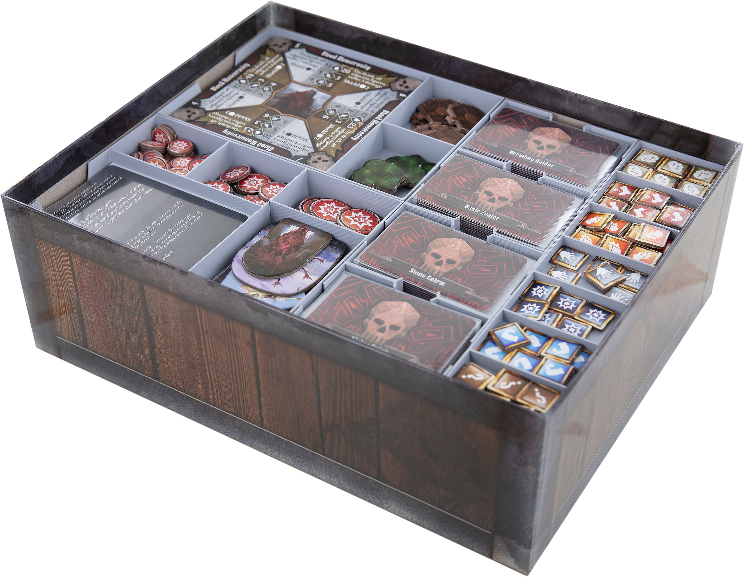 This Organizer makes your life as a mercenary easier. With the included token holders and card holders you tame the game material and keep the board game box neat and tidy.