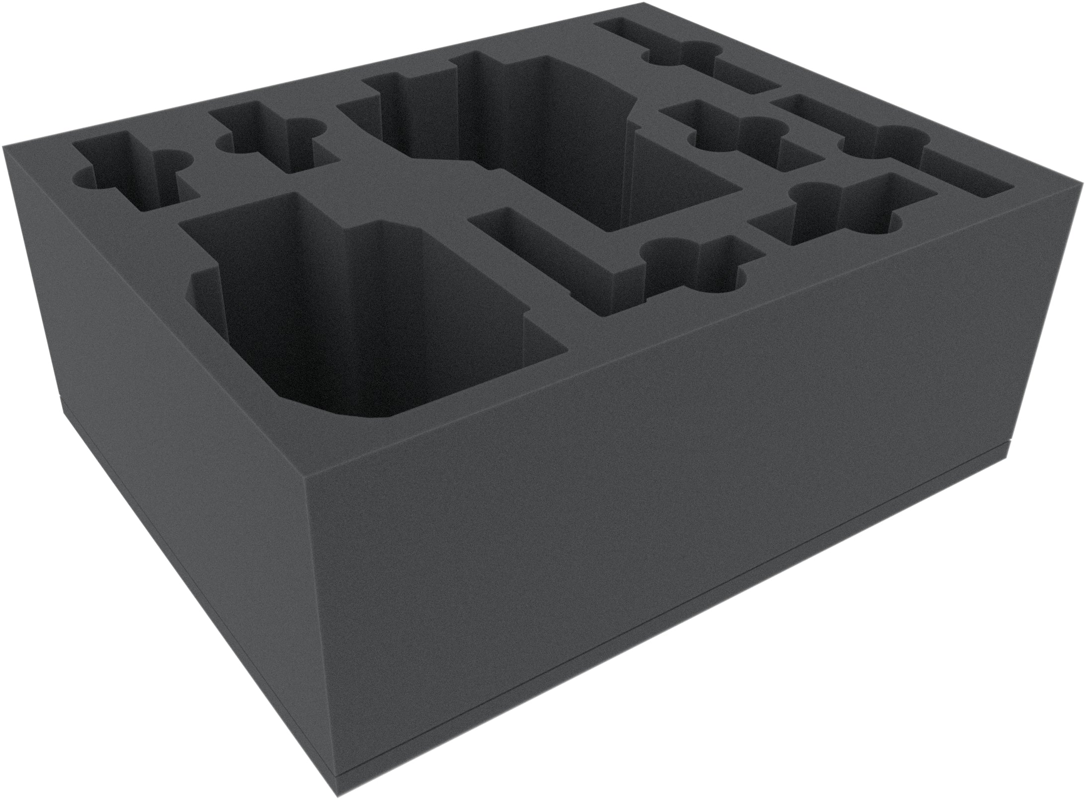 The Full-Size foam tray has the dimensions: 345 mm x 275 mm x 135 mm total height (125 mm usable height + 10 mm foam base)