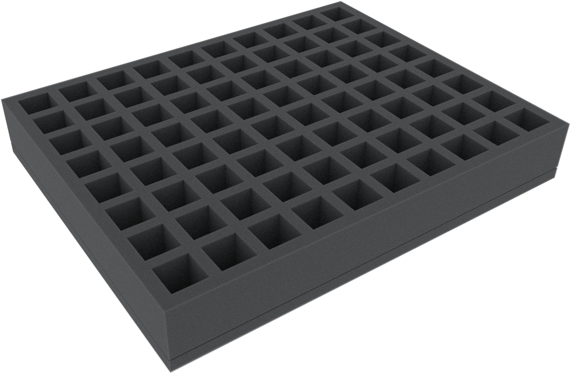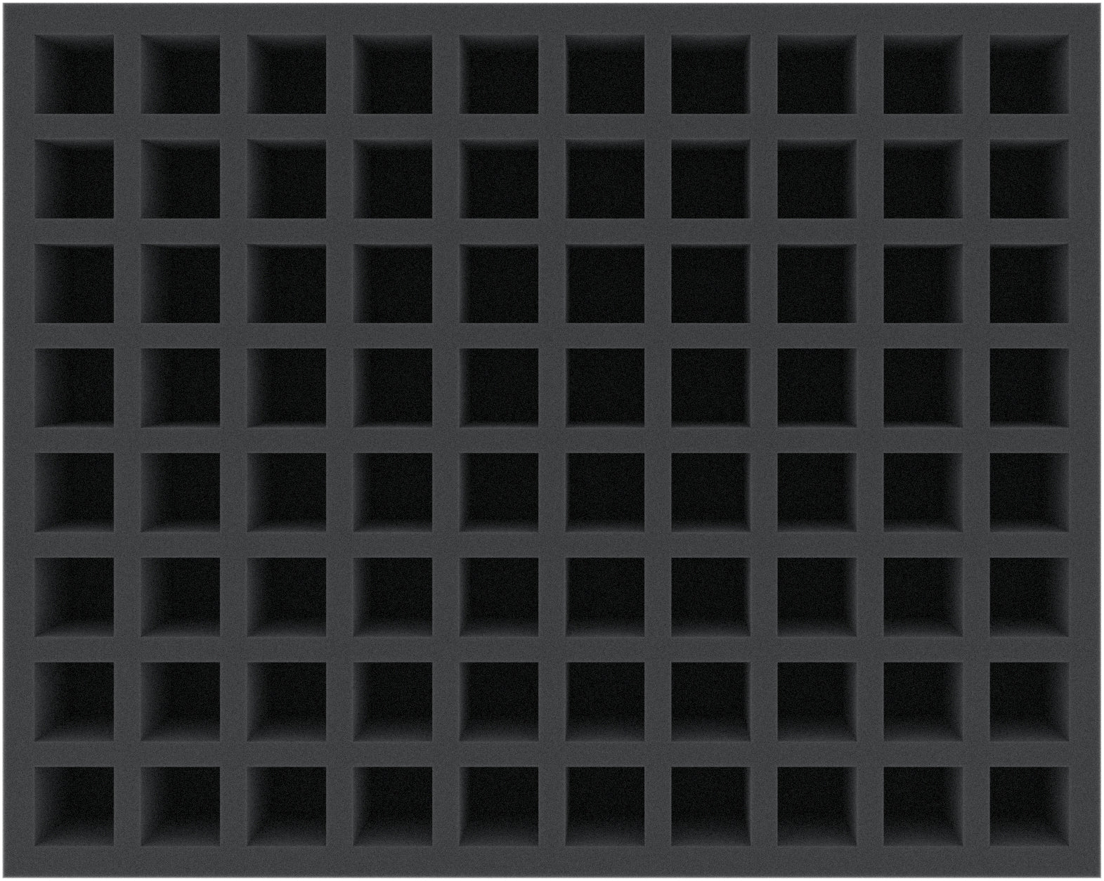 This Full-Size foam tray is divided into 80 compartments. The compartments of equal size are ideal to safely store small figures from various board games and tabletop systems.