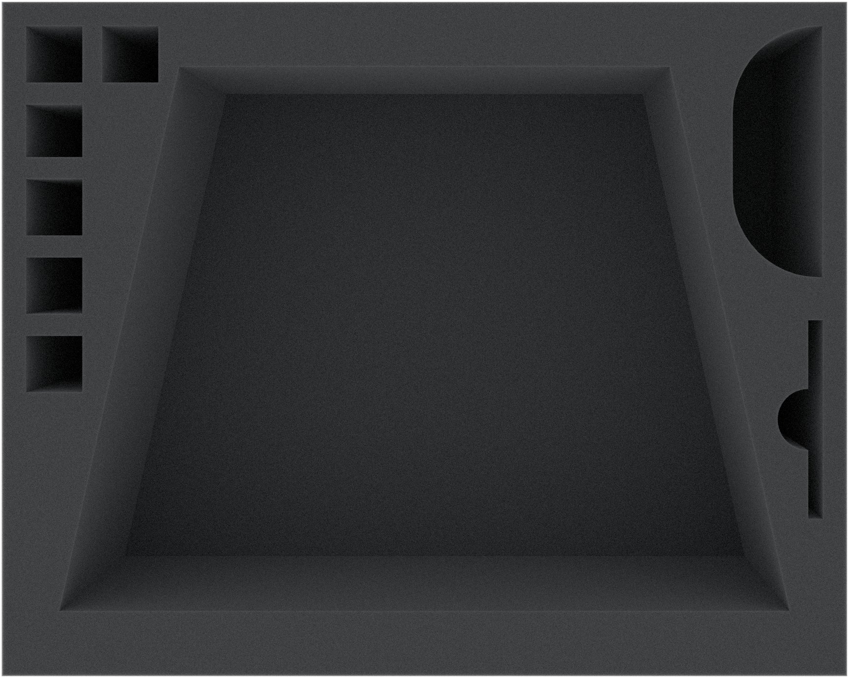 The large compartment is tailor-made for the bunker. The precisely fitting cut ensures that the miniature does not slip around during transport. The soft foam protects sensitive parts from damage. Thus, the painted model is also safe from scratches and abrasion and therefore arrives at the gaming table undamaged and in perfect condition.