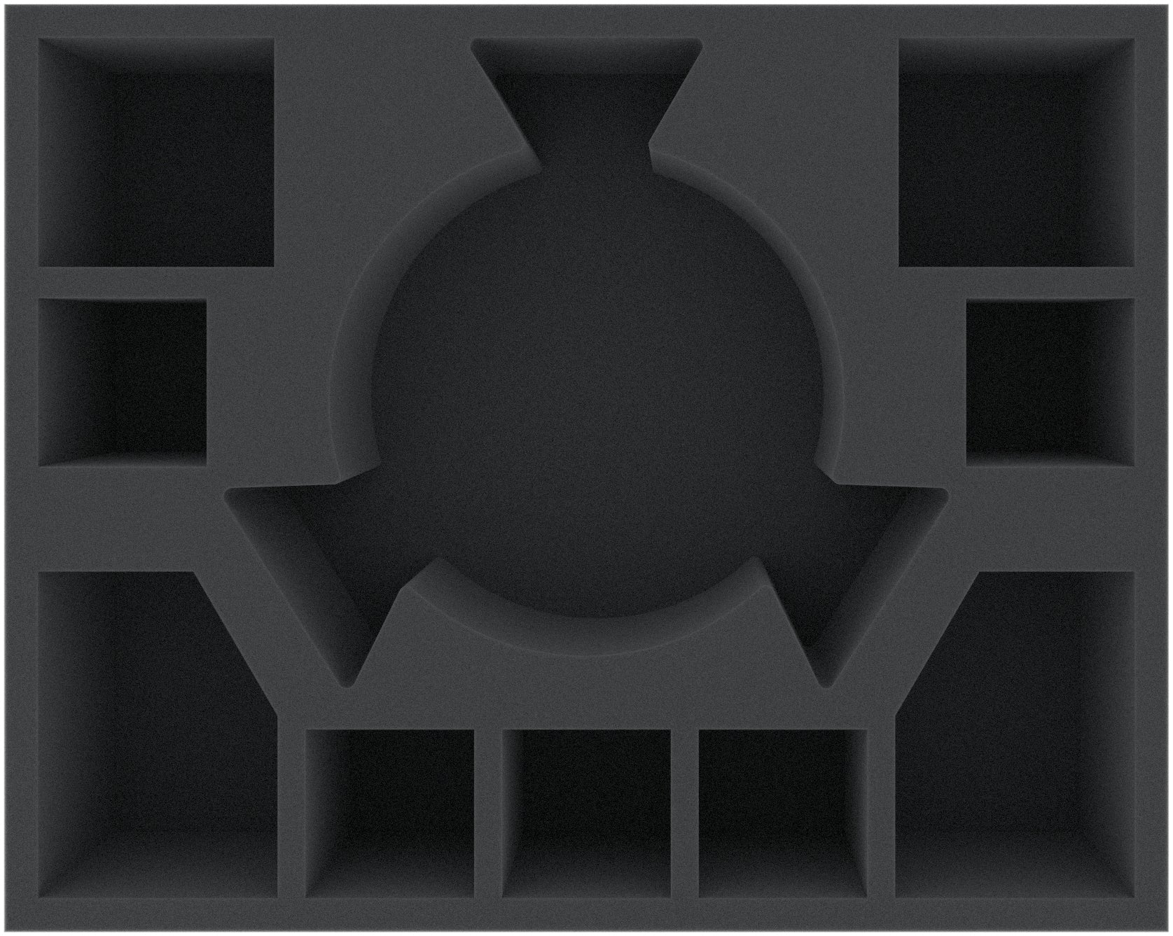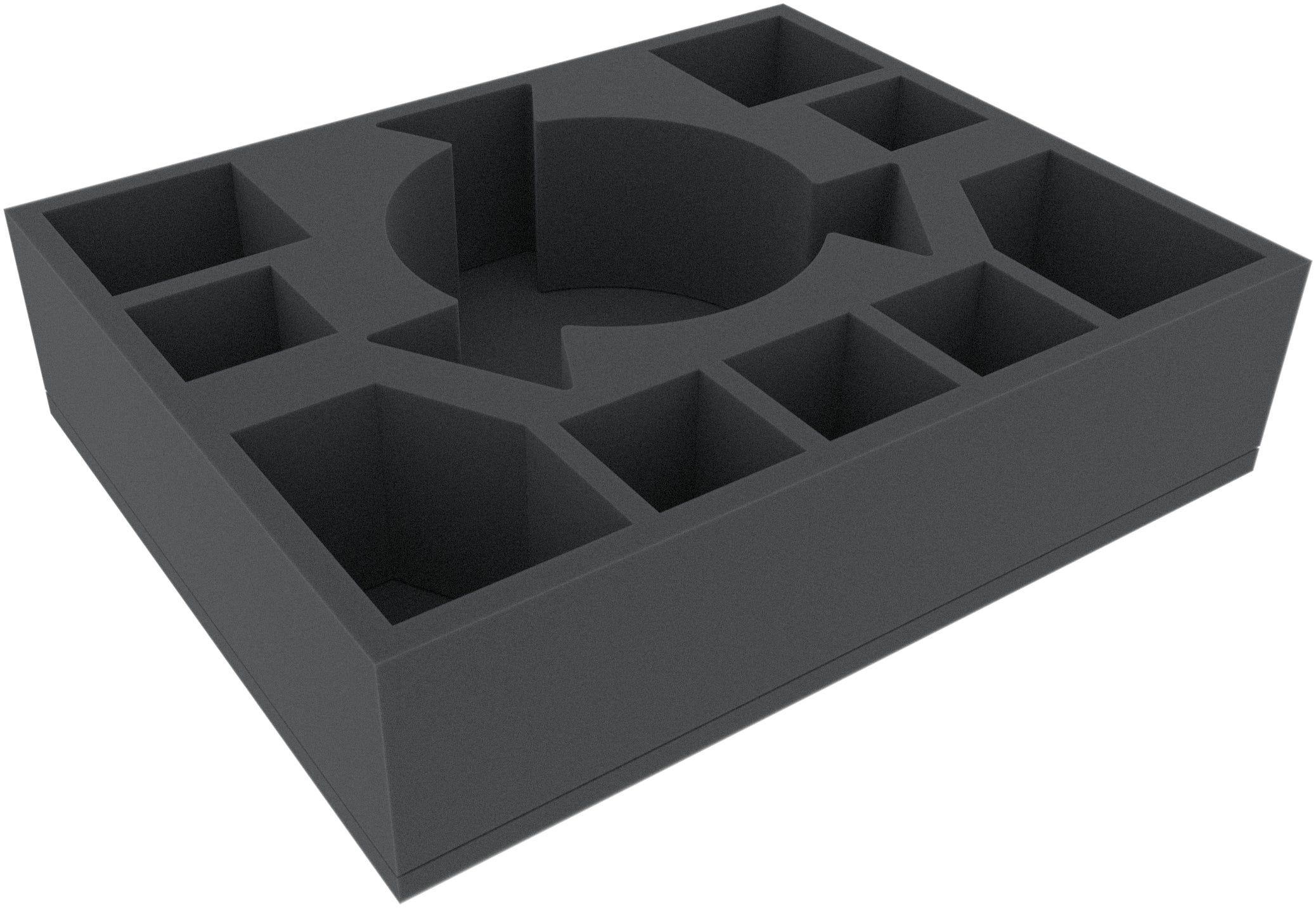 This 85 mm high foam tray is divided into 10 compartments. It is particularly suitable for the safe storage of tabletop and board game miniatures, as well as other fragile models and small parts.