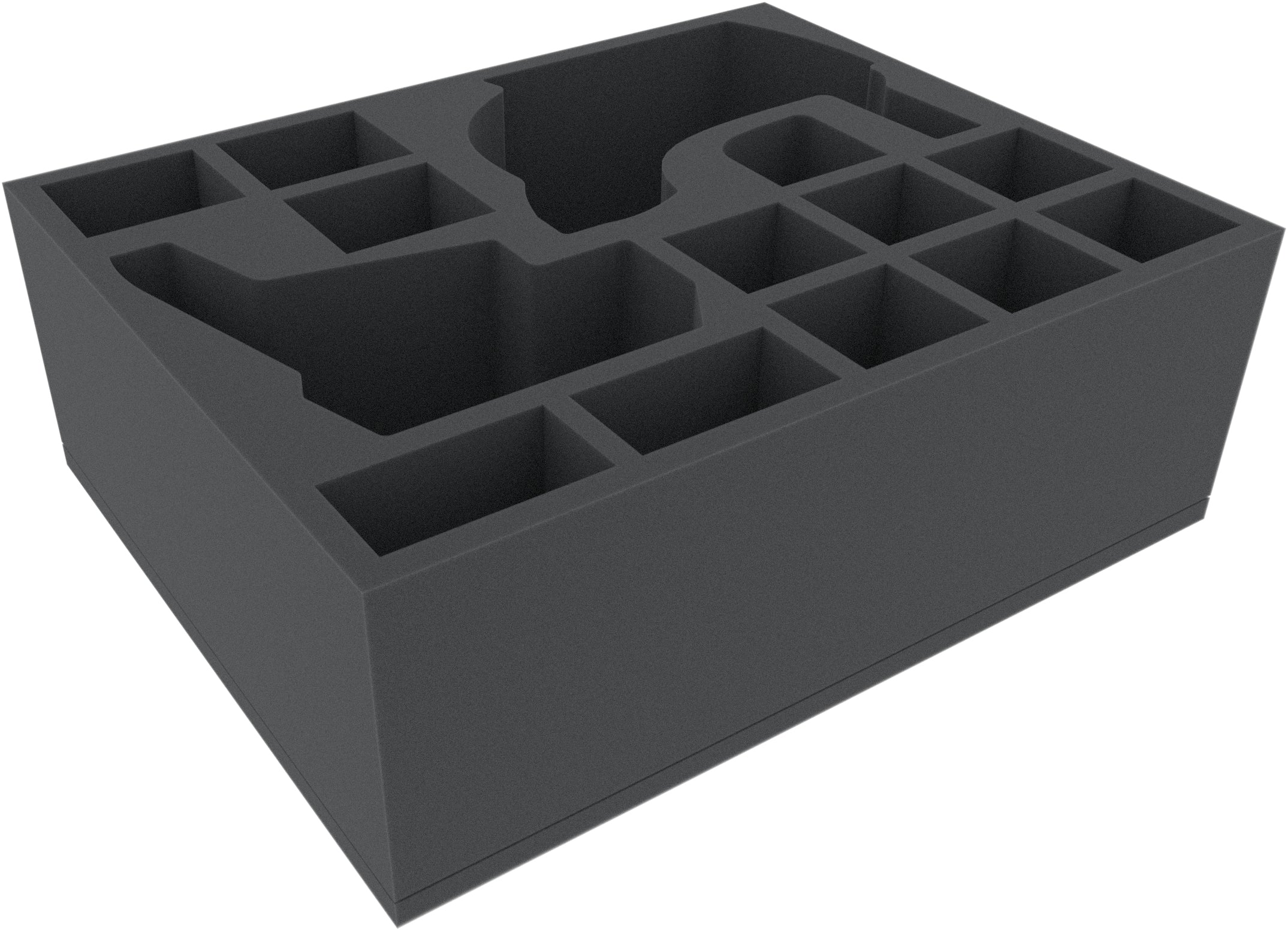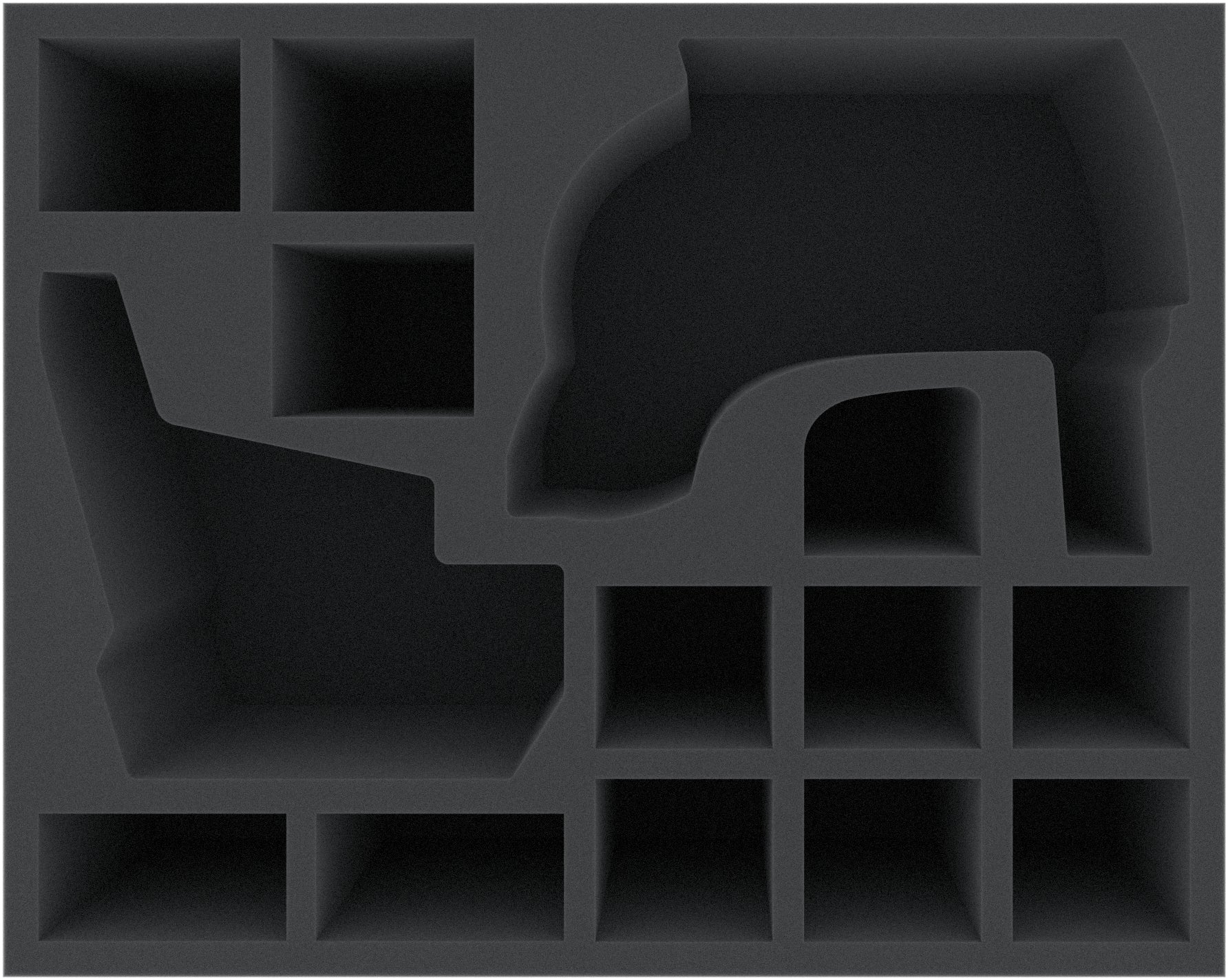 We'll help you get the pieces of your Gloomtide Shipwreck to the next battle in just two, less-damaged pieces. The insert has 13 compartments, the two largest of which are miniature-precisely cut to fit the shape of the two parts of the Gloomtide Shipwreck. This gives the miniature a tight fit and prevents it from sliding around during transport. The soft, fine-pored foam prevents the rotten planks from bending or breaking. Plus, the colors of your painted wreck are safe from unwanted scratches and additional color abrasion.