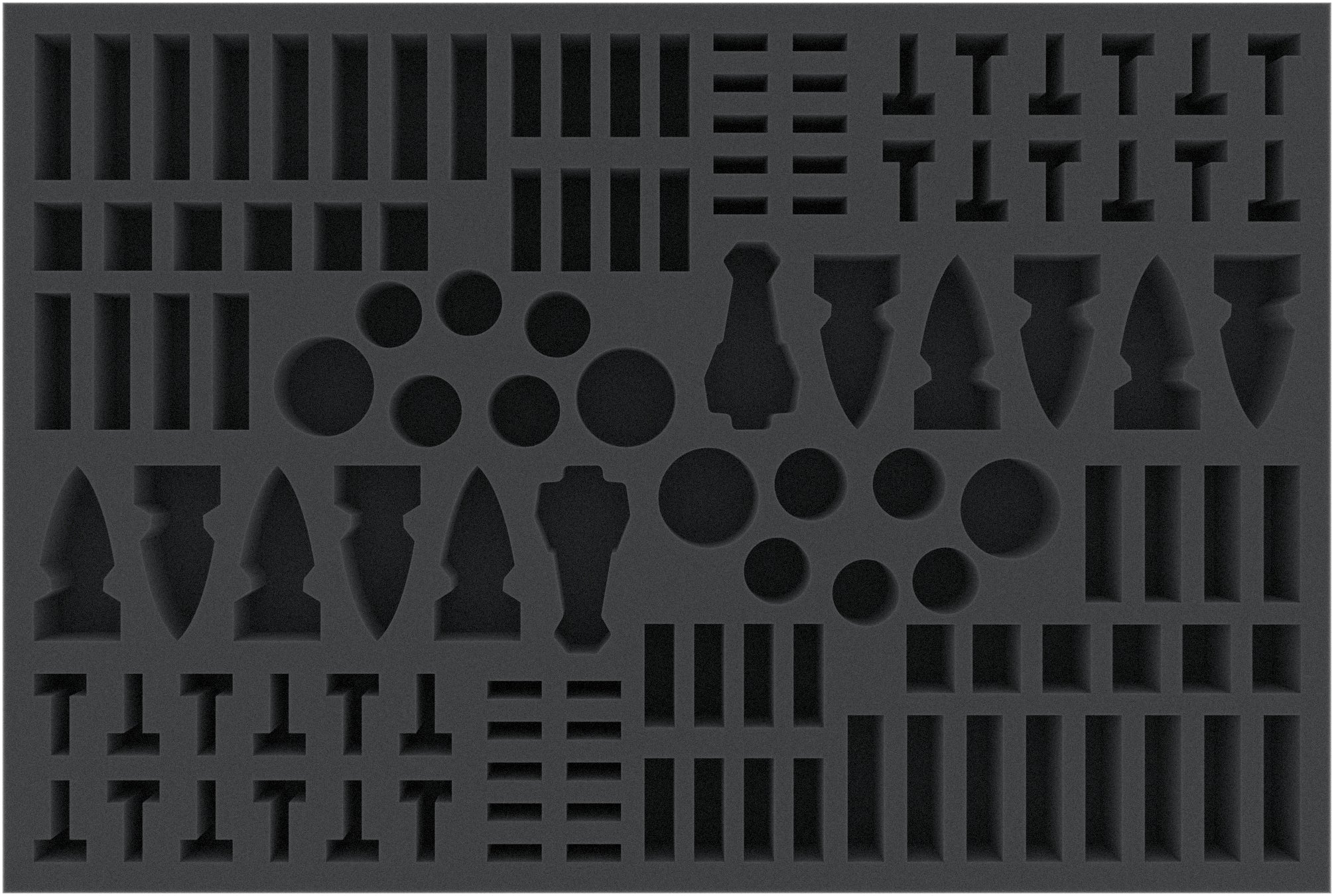 It is divided into 122 compartments individually tailored to the miniatures and ensures that each figure is securely packed. Two factions fit on this mat, clearly separated from each other.