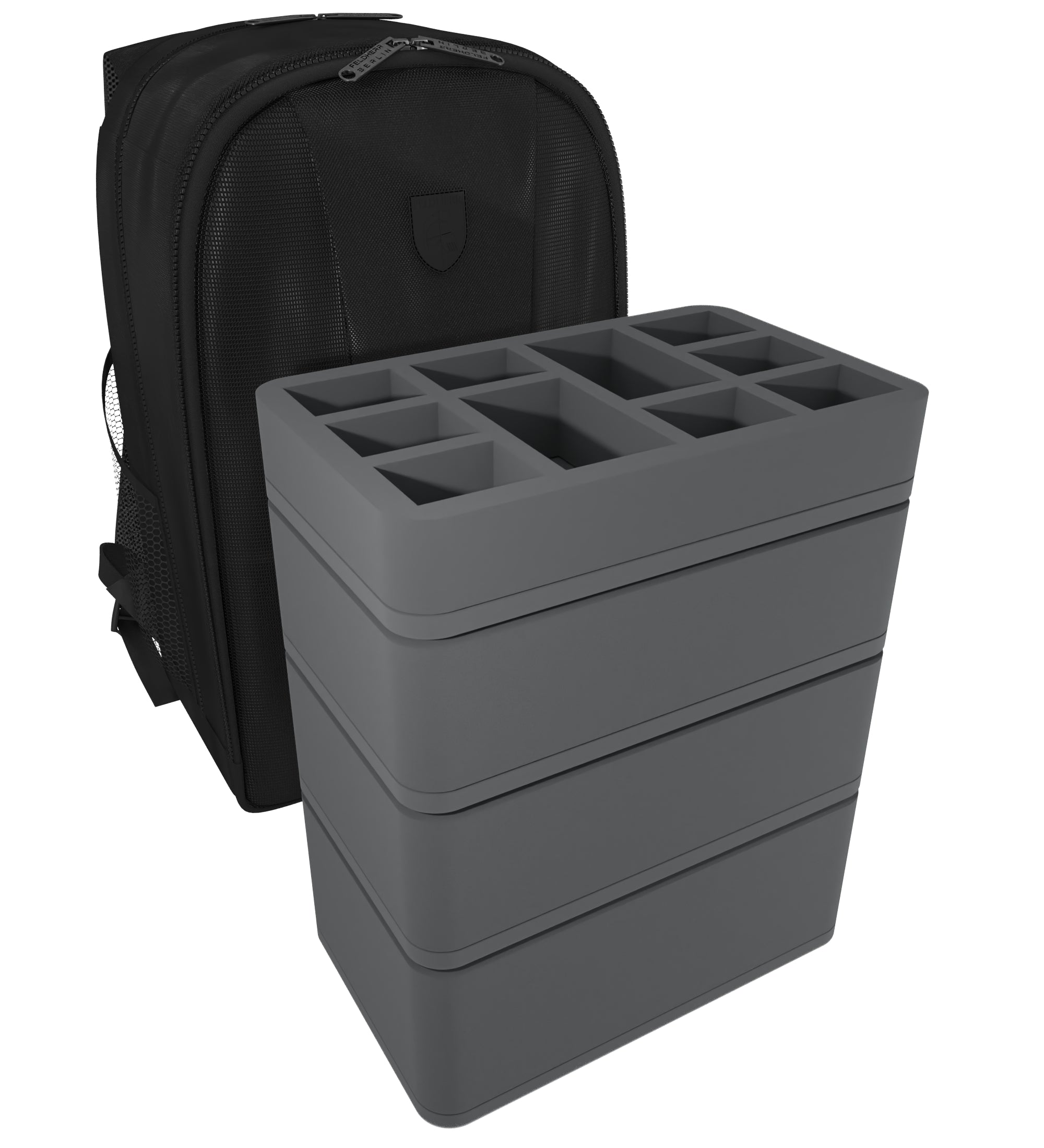 In this sturdy Feldherr Backpack your miniatures are optimally protected. You can safely transport up to 56 warrior figures to the battlefield in the custom Feldherr foam trays.