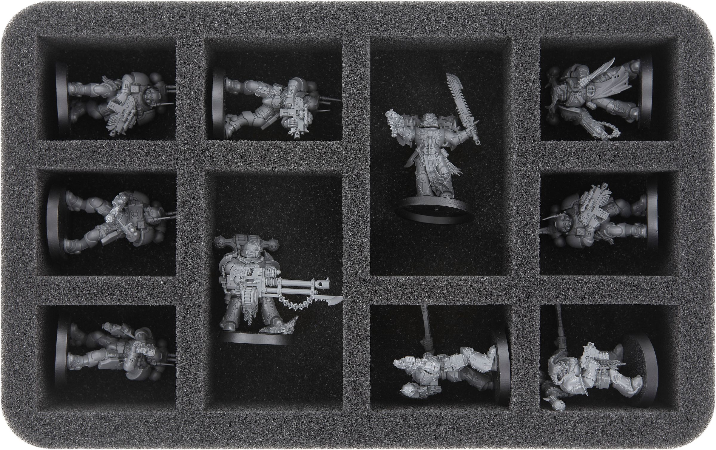 - 1 Half-Size foam tray with 10 compartments for Myphitic Blight-haulers, Poxwalkers or Plague Marines and models with similar dimensions (HS080A028)