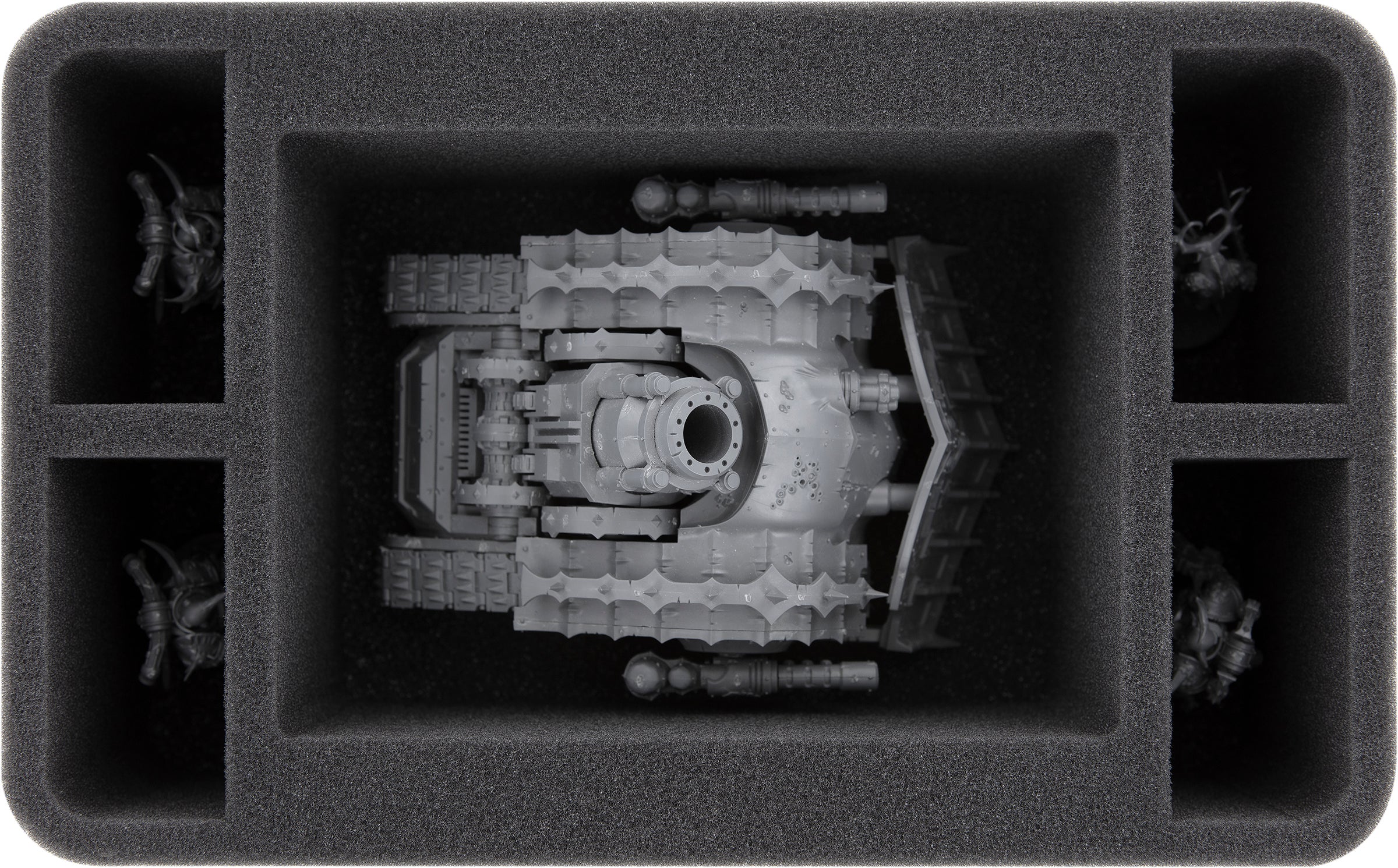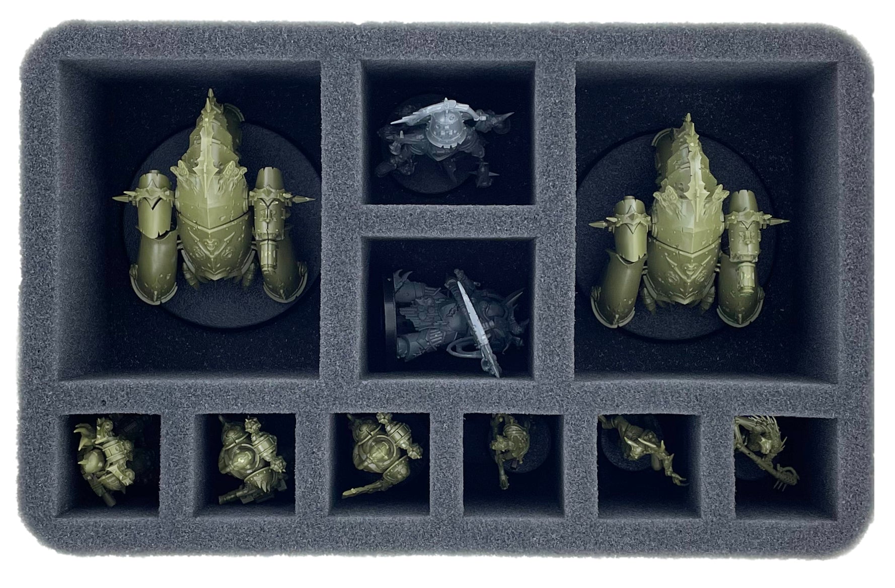 Custom-fit cut compartments reliably protect your miniatures from damage. The soft foam ensures that your painted units also arrive safely at the game table without scratches.