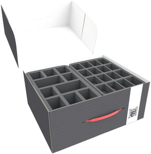Qu'il s'agisse d'une petite Strike Force ou d'une vaste collection de Death Guard, les solutions flexibles en mousse et en plastique dur aident à stocker les modèles, les accessoires et les extensions en les protégeant durablement et en les gardant à portée de main.