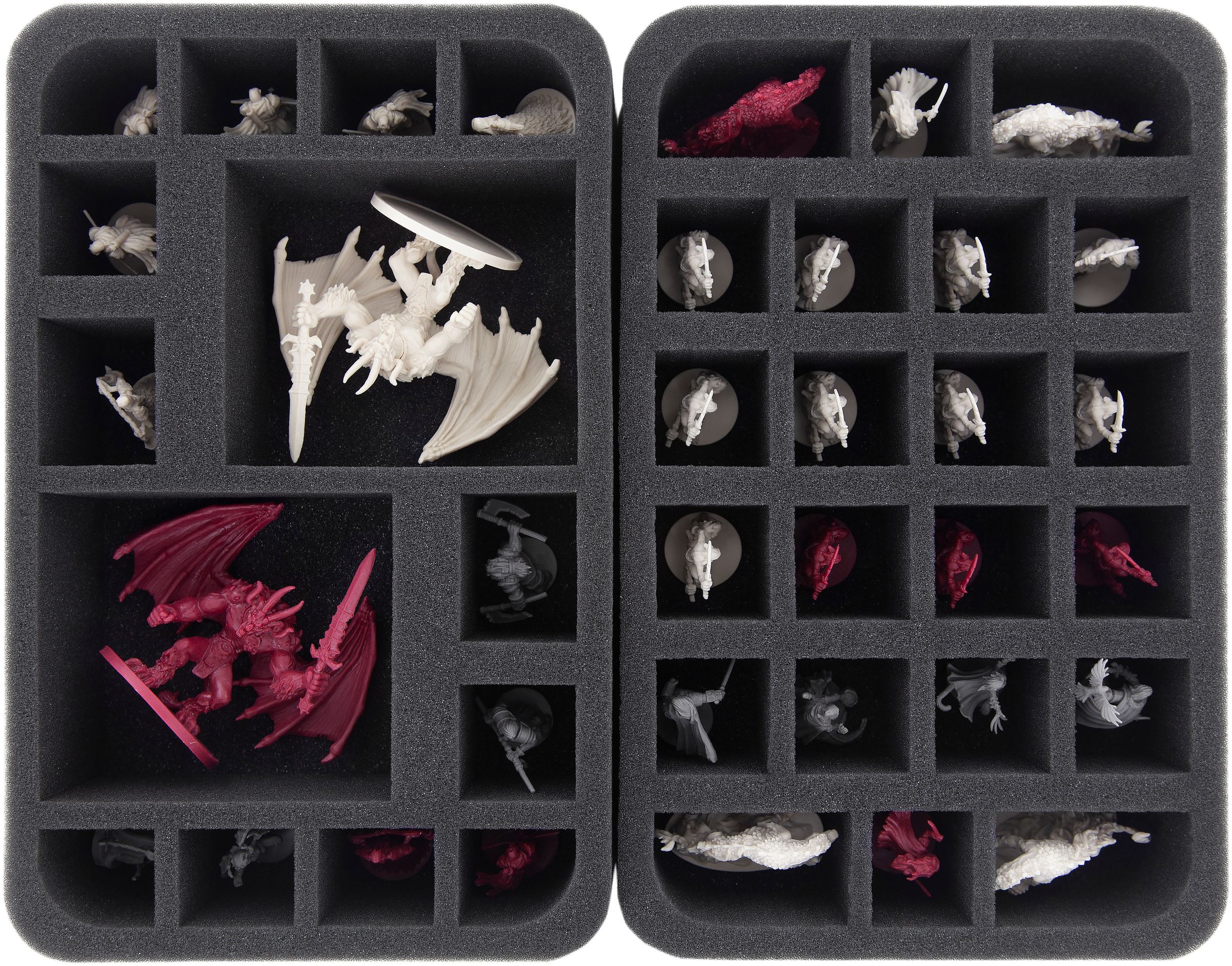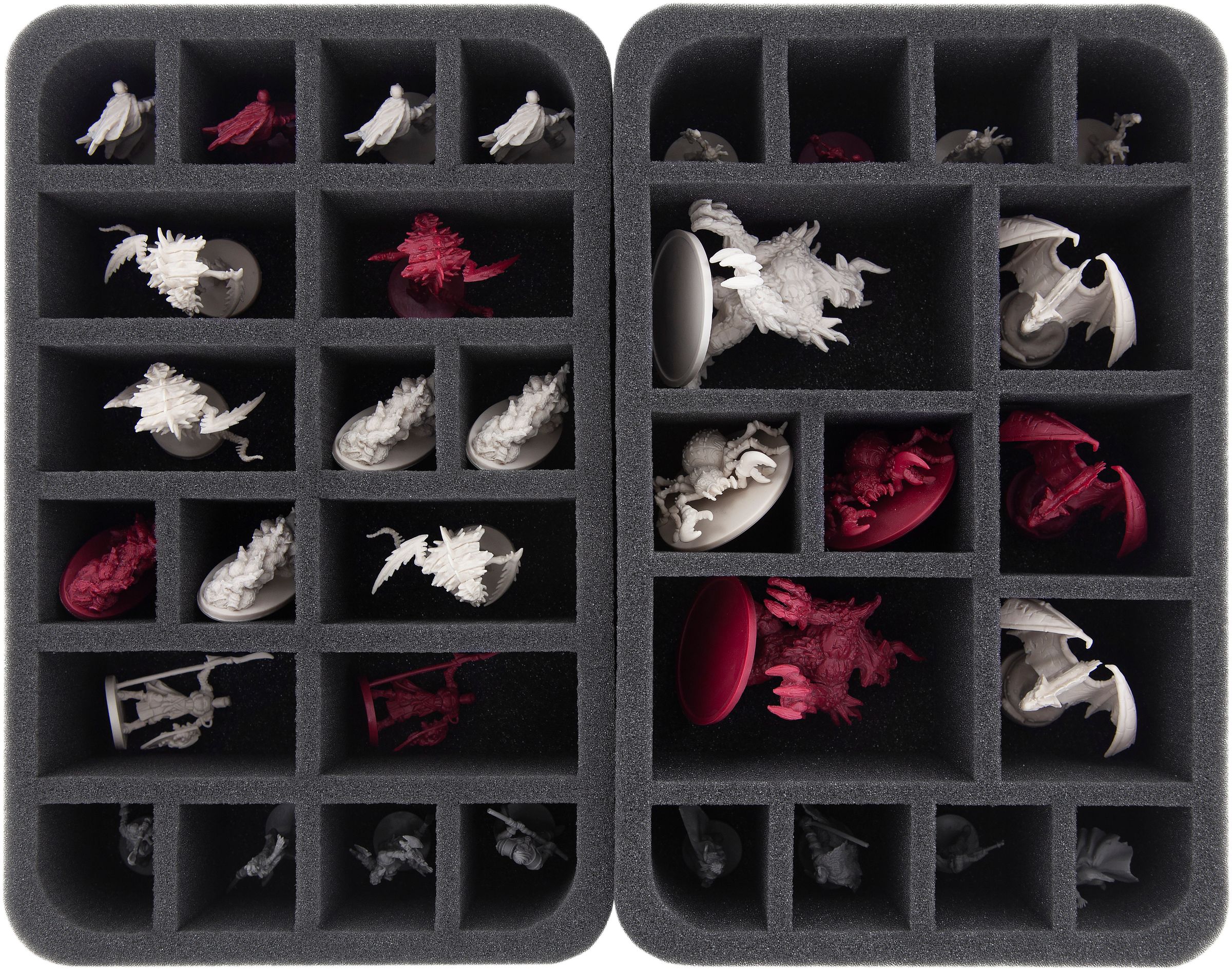 For the protection of your hero and monster miniatures, there are 4 custom-fit foam trays. Whether it's the Carrion Drakes, the Volucrix Reavers or Vyrah the Falconer, every miniature gets the right compartment.