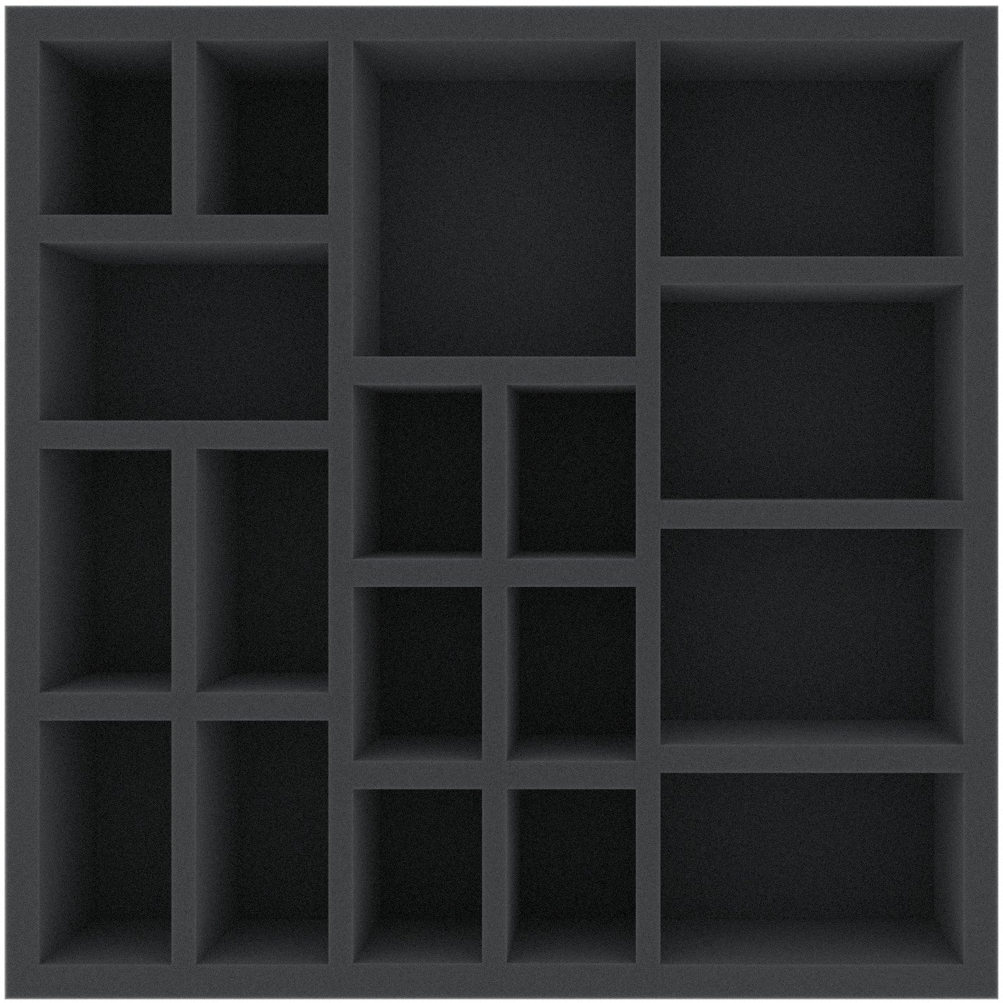 The foam tray has 18 compartments which will hold miniatures of different sizes. The fine-pored foam reliably protects your figures – fragile parts remain intact, the color of painted models remains unharmed.
