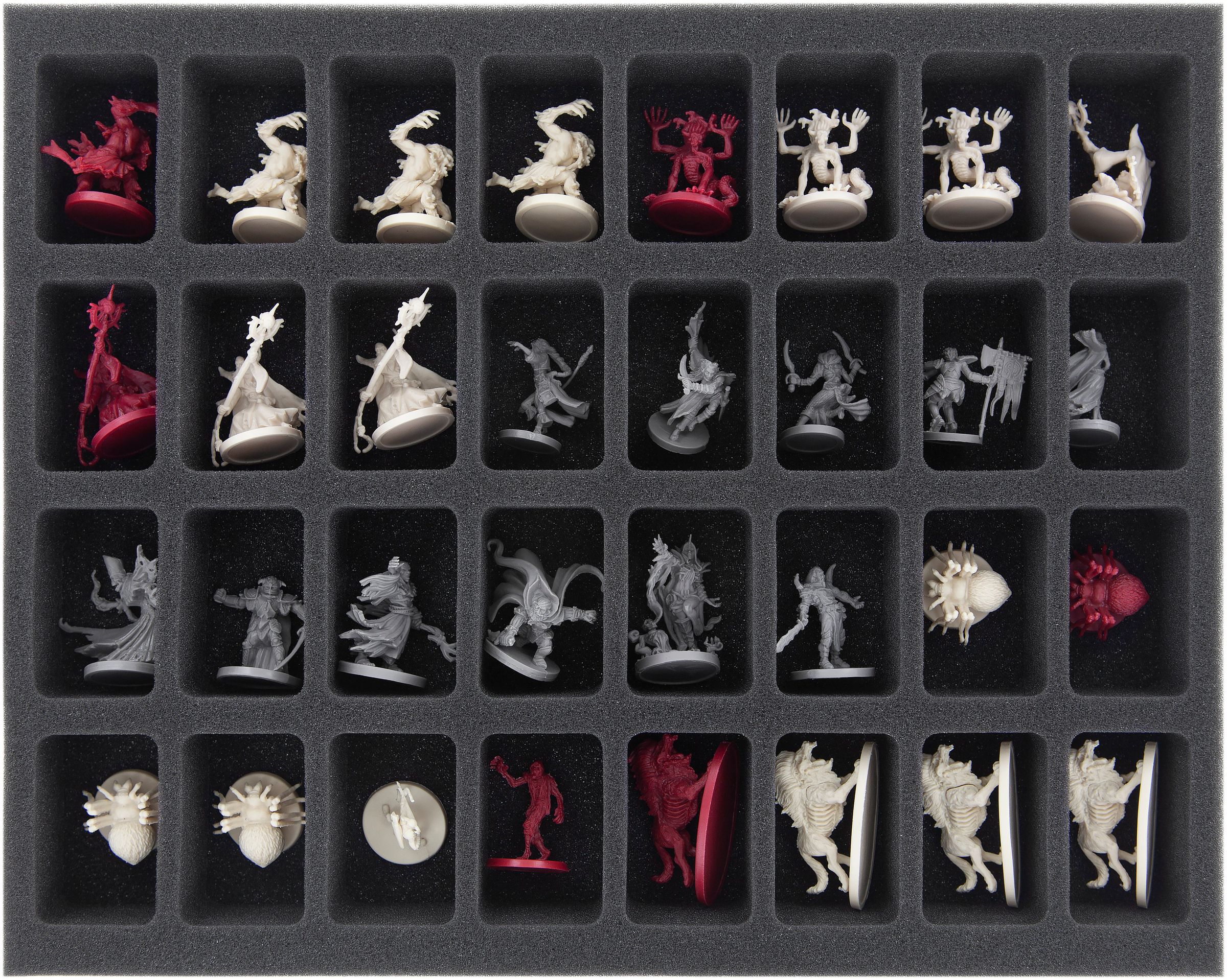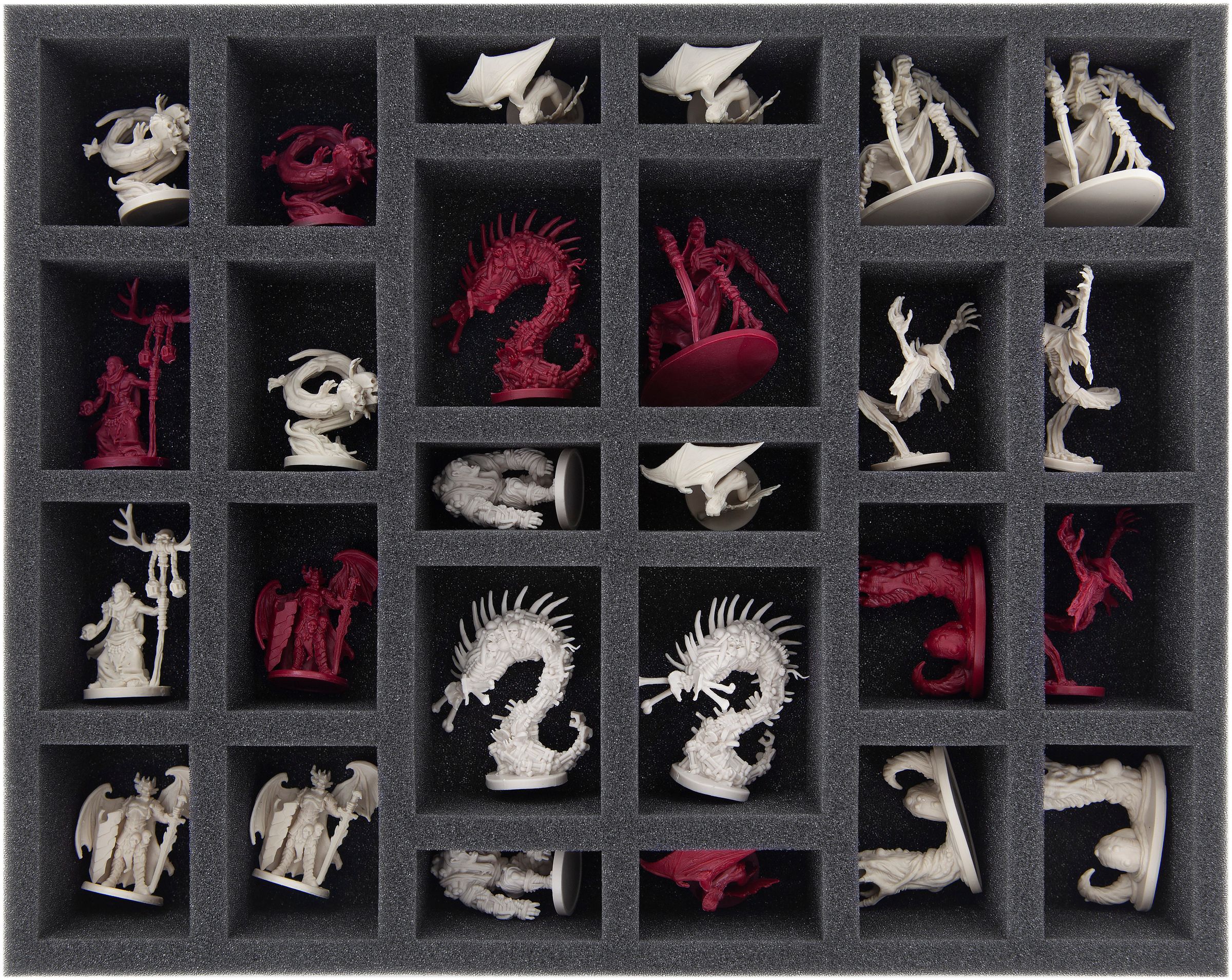 - 1 Full-Size foam tray with 32 compartments for miniatures (FSMEDS040BO)