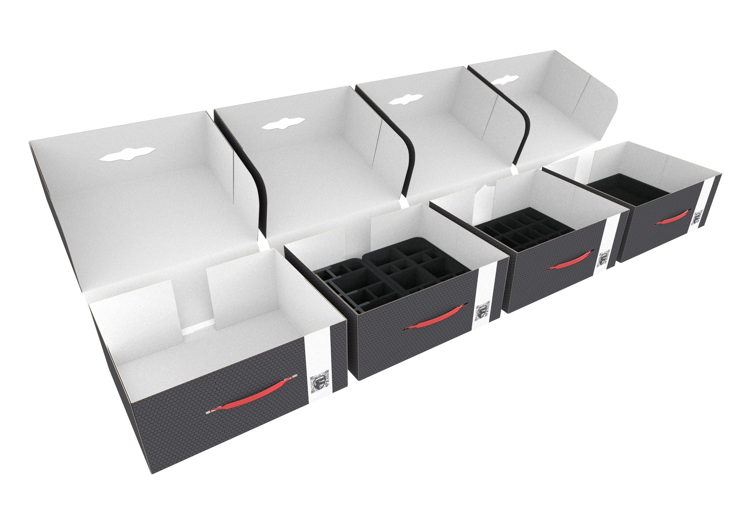 An epic dungeon crawler that is unparalleled. Above all, it is the constantly growing range of highly detailed miniatures that makes this fantasy board game so special. To keep you from sinking into chaos of diversity, we now have the large Feldherr Transporter set for you to safely store and transport this huge Descent collection.