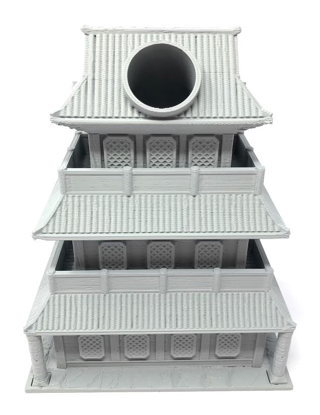 3D printed - detailed dice tower, with removable roof and exchangeable dice tray. The Dice Tower can also be used as a terrain part for your miniatures game or as a center piece for your next DnD session.