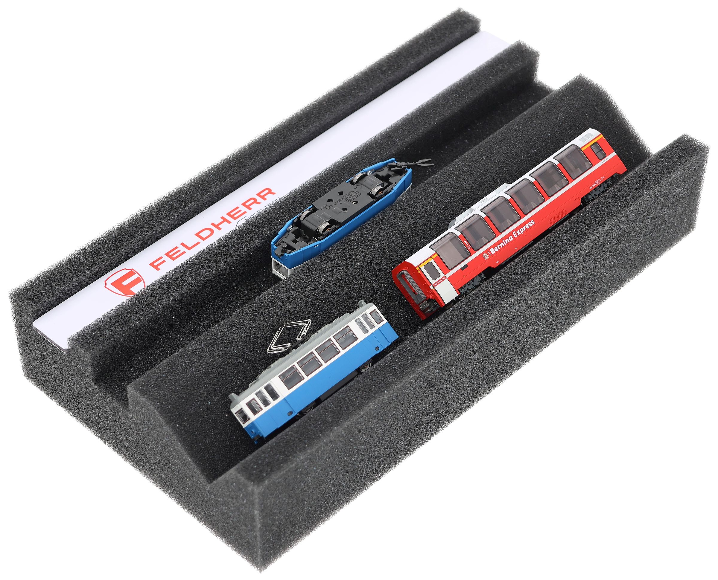 Like all our products, the N scale loco cradle is manufactured with German precision. The premium P.U. foam used provides an ideal combination of stability and protection for sensitive N scale model railway components. Unlike improvised solutions, our specially developed N scale loco cradle protects the sensitive surfaces of your valuable N scale models from scratches and other damage.