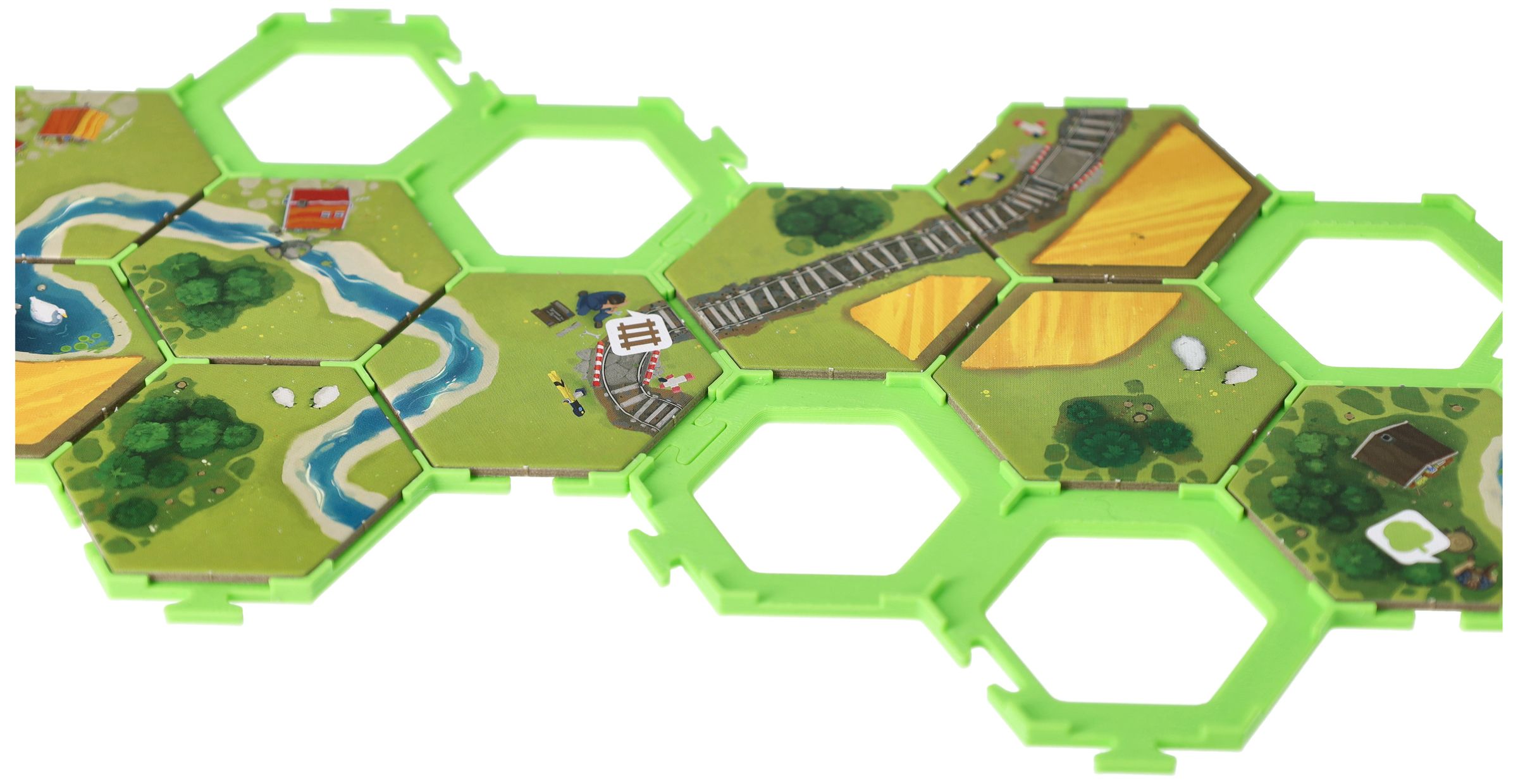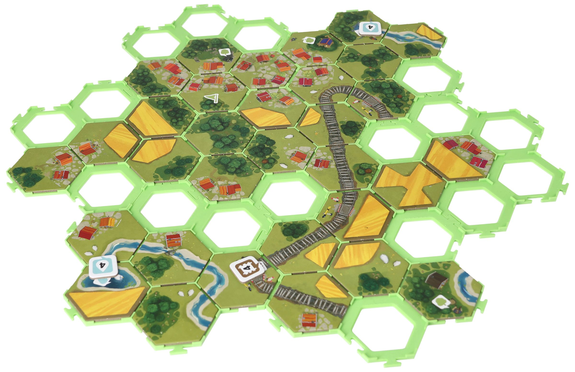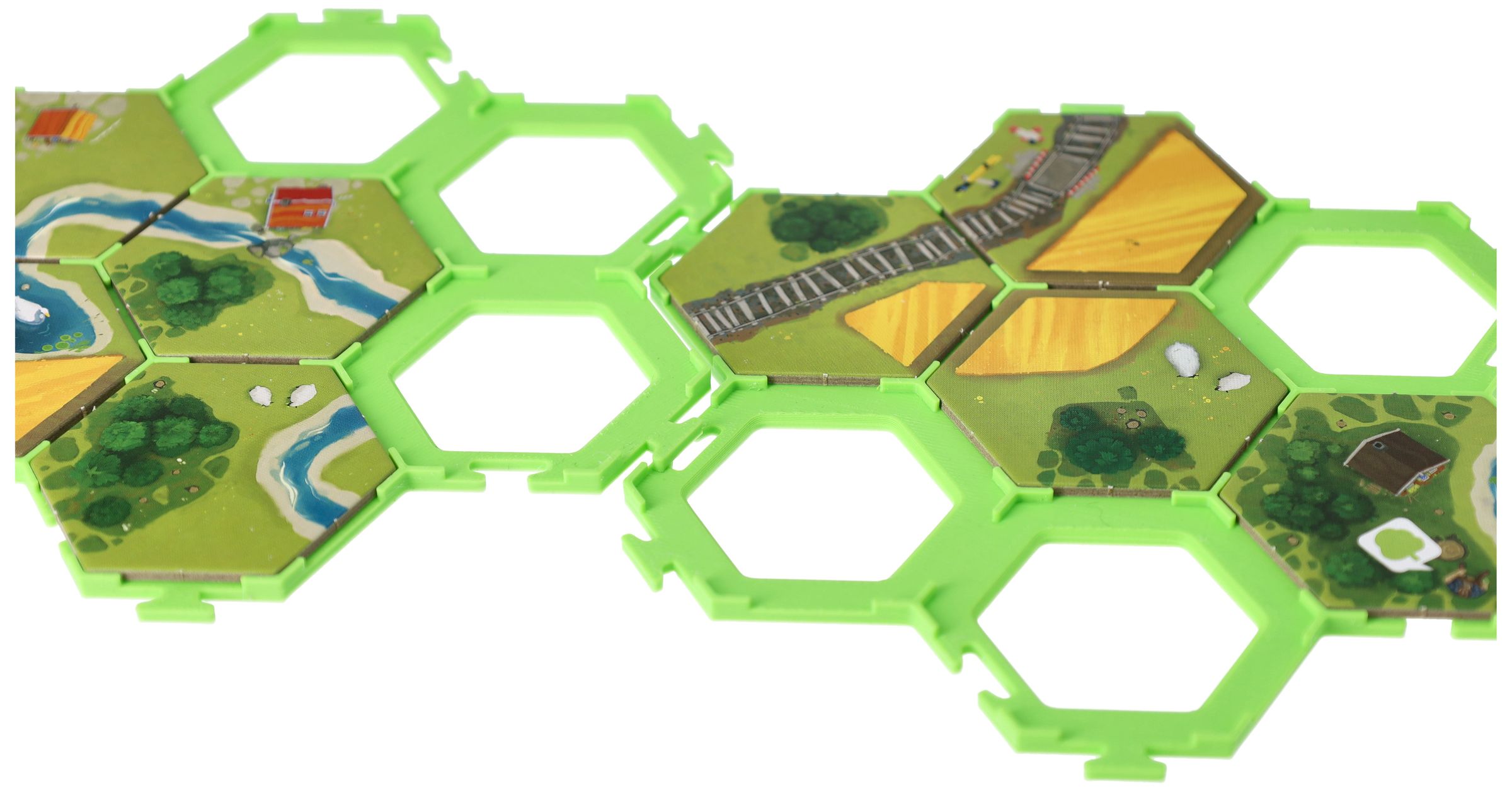 - They prevent the hexagonal landscape tiles from slipping on the tabletop and keeps the playing field together