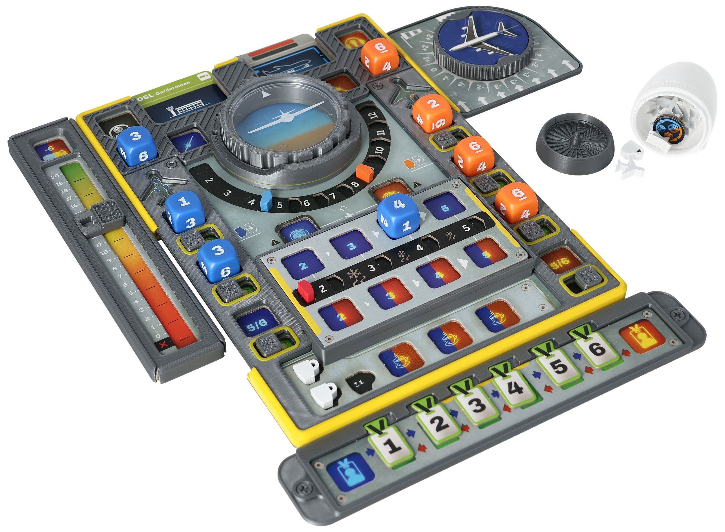 - The dashboard and game aid set made of sturdy plastic replaces and supplements the central Sky Team elements made of cardboard, bringing them directly to the gaming table as stable 3D parts.