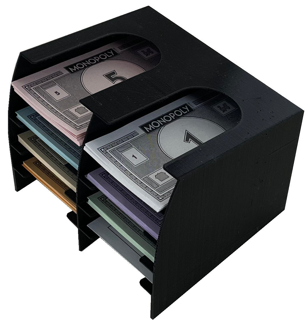 Money rules the world. Of course, this also applies to Monopoly. Until now, you always had to leave the bank in the game box. That led to problems, especially when there was a lack of space on the tabletop.