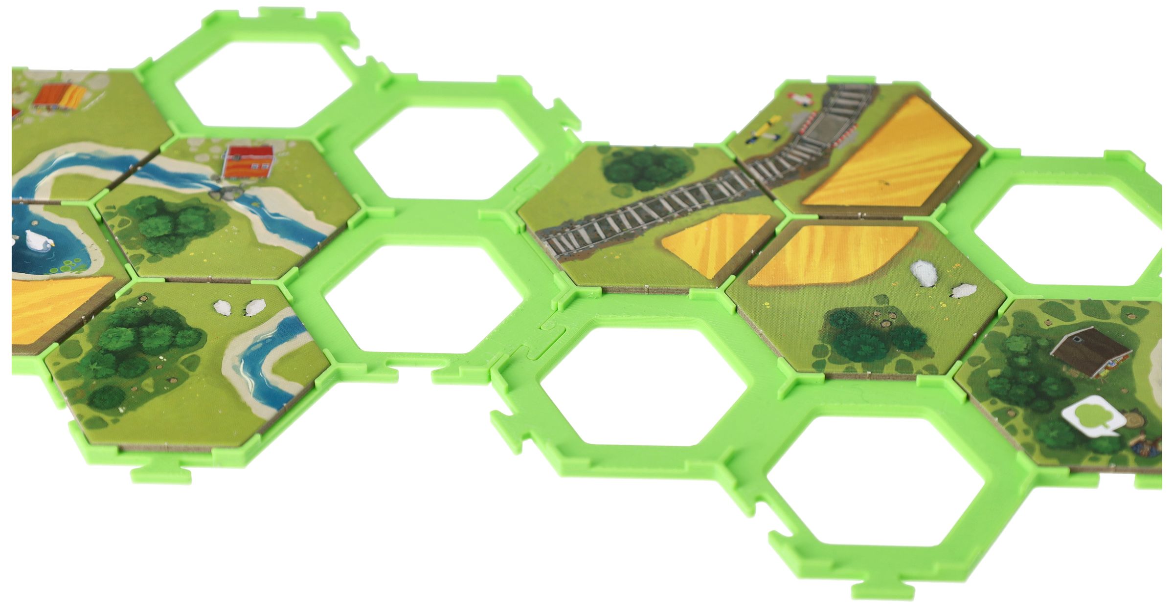 - Prevents the hexagonal landscape tiles from slipping on the tabletop and keeps the playing field together
