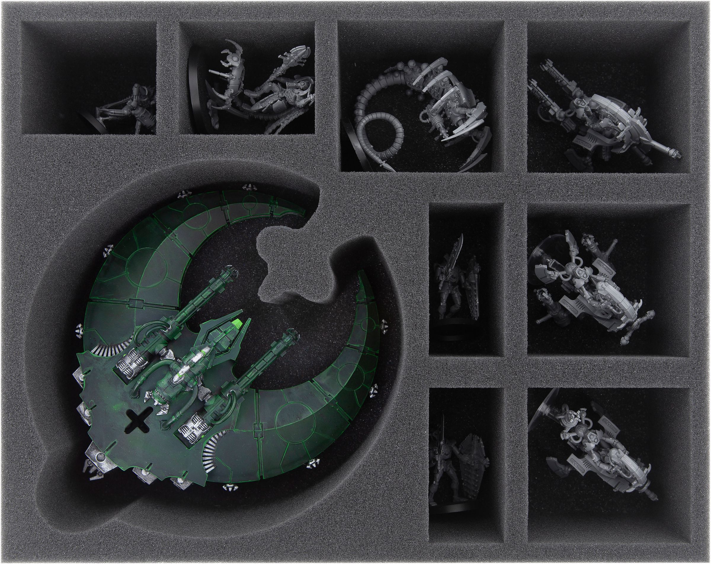 - 1 Full-Size foam tray with 9 compartments for e.g. Doom Scythe or Night Scythe + 8 more Necrons (FSMEJZ075BO)