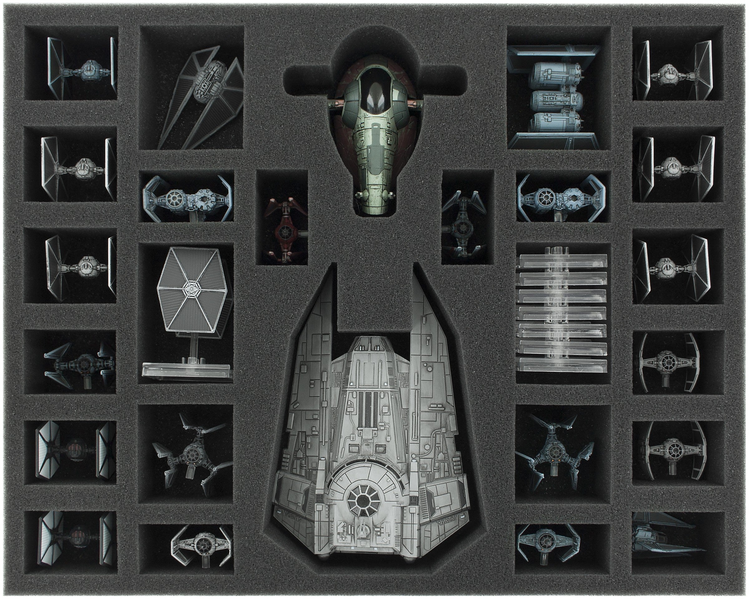- 1 x 90 mm (3.54 inches) full-size foam tray for Star Wars X-WING Imperial Raider, Imperial Assault Carrier, Lambda-class Shuttle and Upsilon-class Shuttle (Item No.:[FSJT090BO])