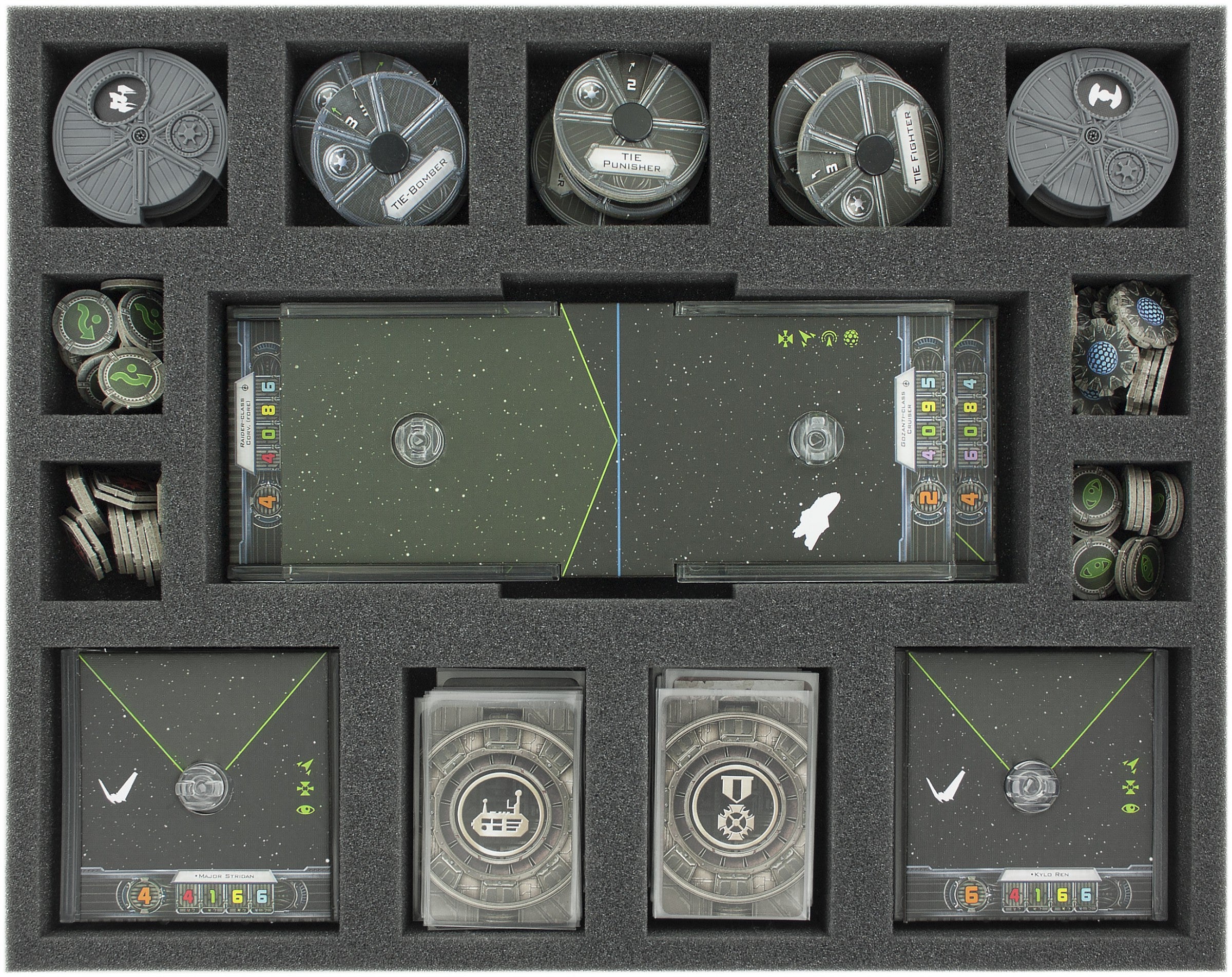 Feldherr Maxi Bag for Star Wars Empire Wave 1 - 10. The Bag comes with foam trays for the rebel ships from wave 1 - 10. In addition, there is space for dials, bases and tokens.