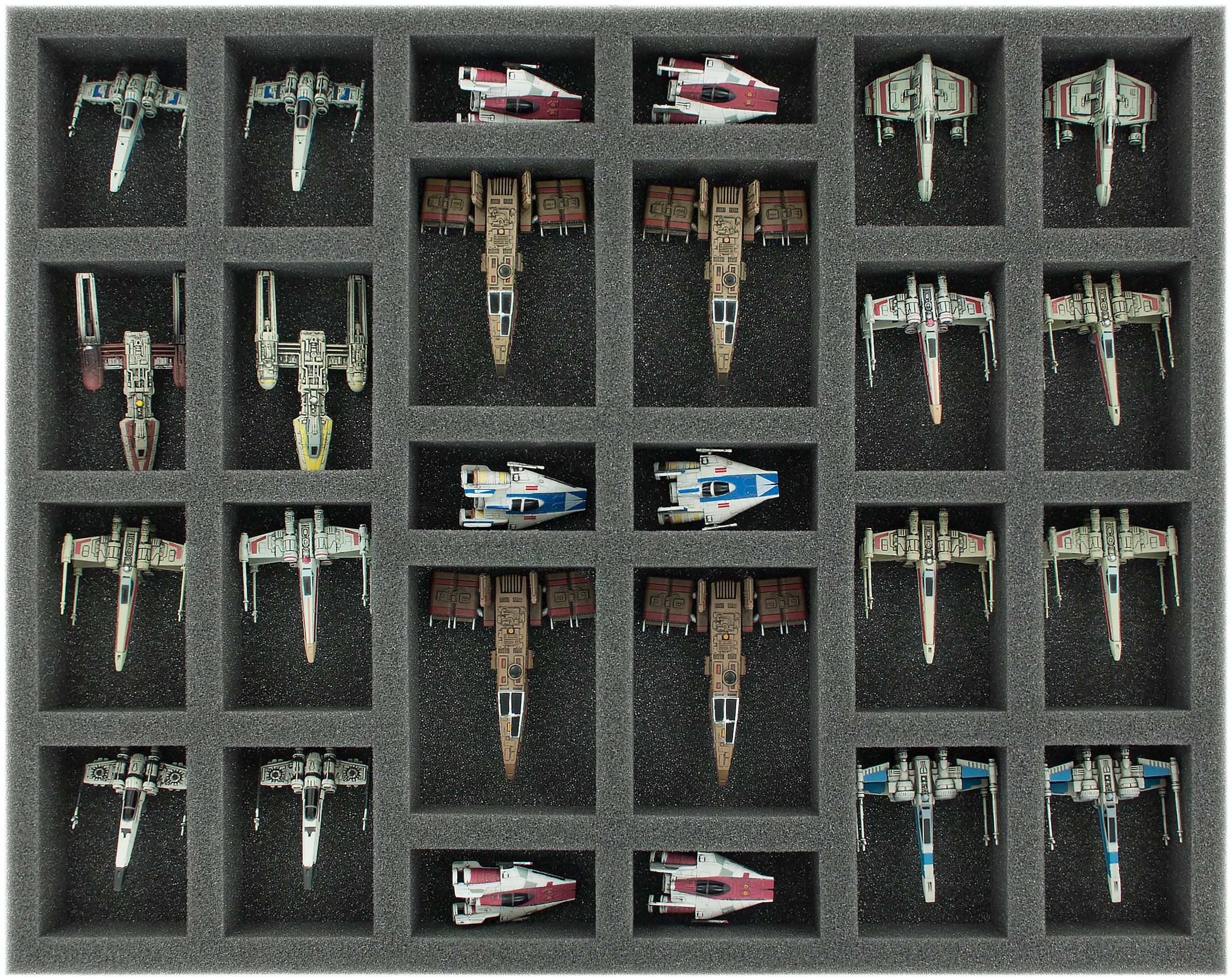 - 1 x FS035XW02 35 mm full-size foam inlay for 26 Star Wars X-WING fighters