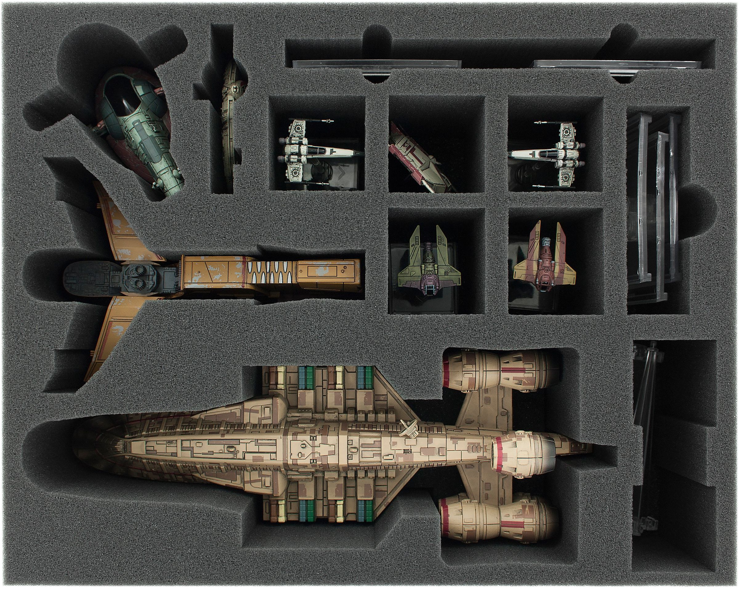 - 1 x FSKC100BO 100 mm full-size foam insert for Star Wars X-WING C-ROC cruisers, Hound's Tooth, JumpMaster 5000 and Slave 1