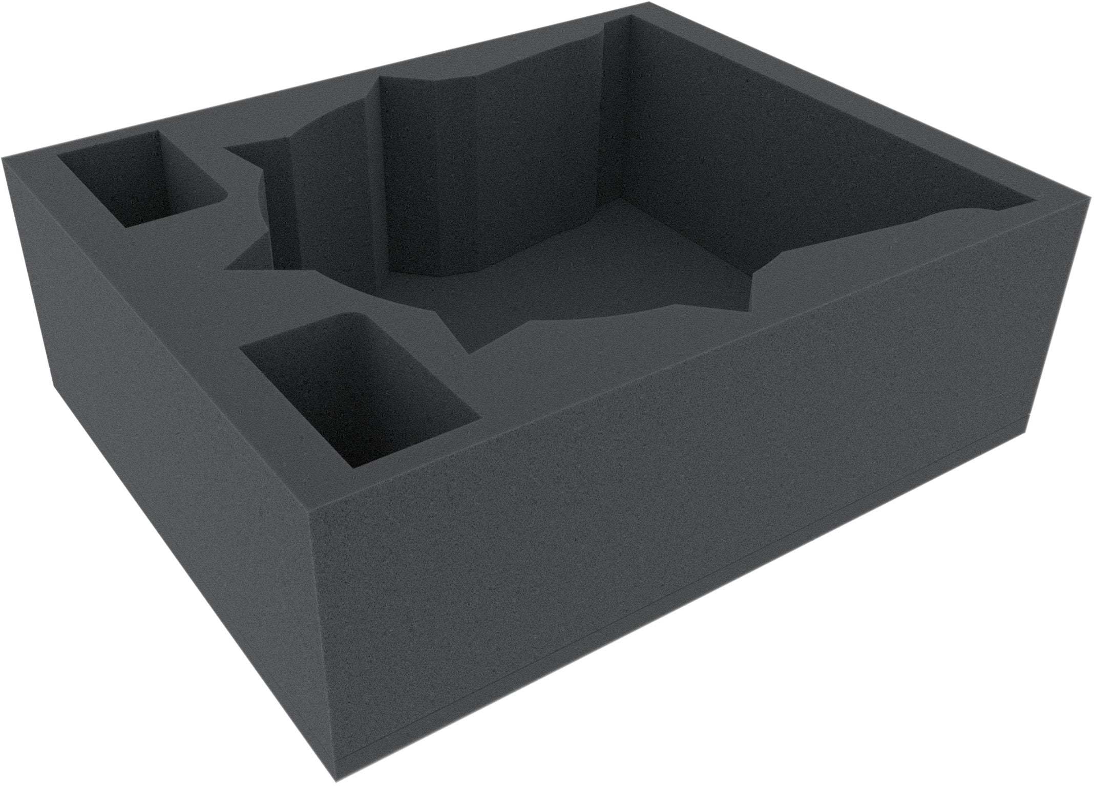 The Full-Size foam tray has the dimensions: 345 mm x 275 mm x 115 mm total height (105 mm usable height + 10 mm foam base)