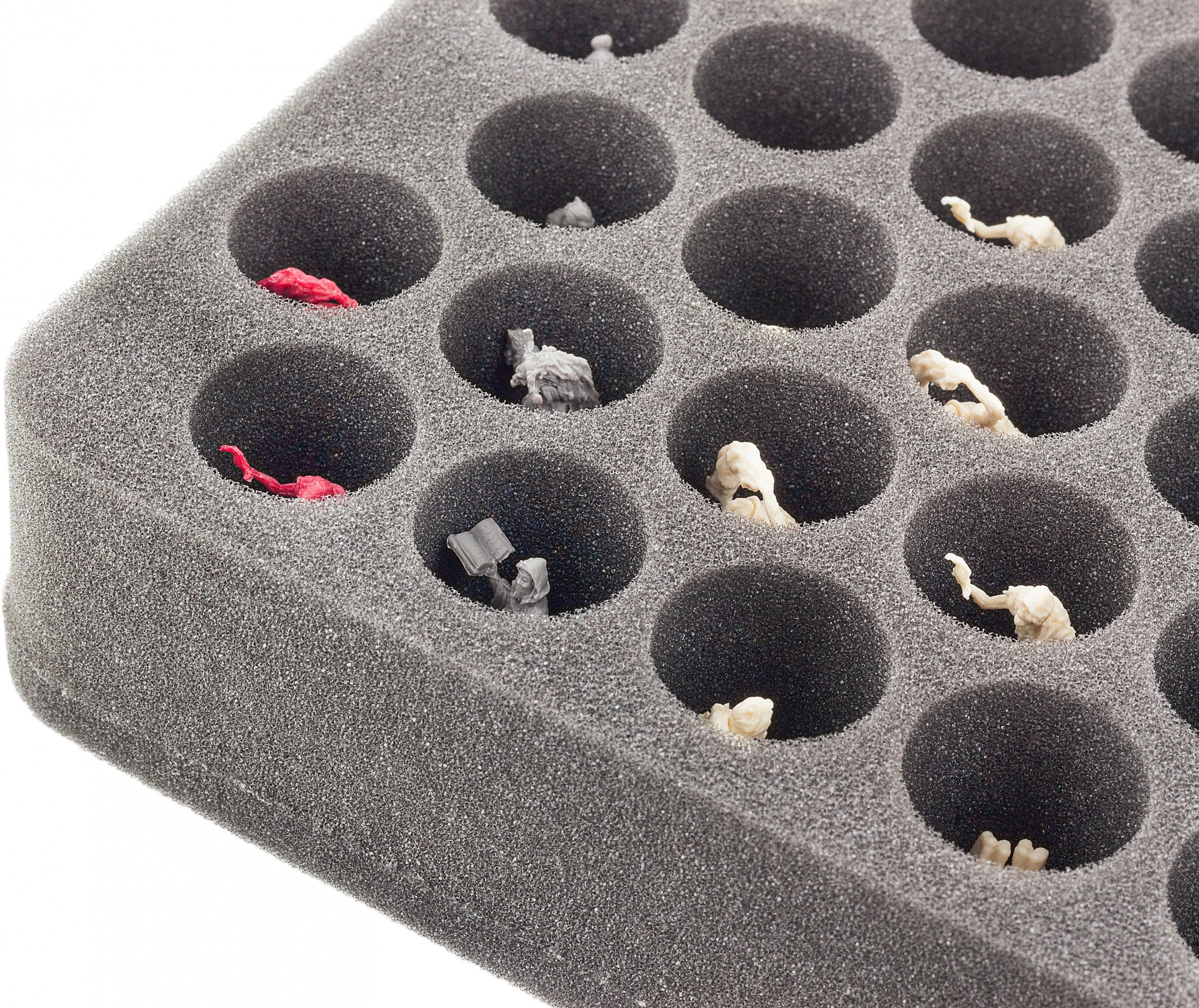 Syndrael et Zombies tous ensemble au même endroit ? Cela peut fonctionner sans conflit et sans dommages, à condition qu'ils restent correctement séparés l'un de l'autre. Notre plateau en mousse demi-grandeur s'en charge avec 37 compartiments pour les miniatures Descent de petite taille.