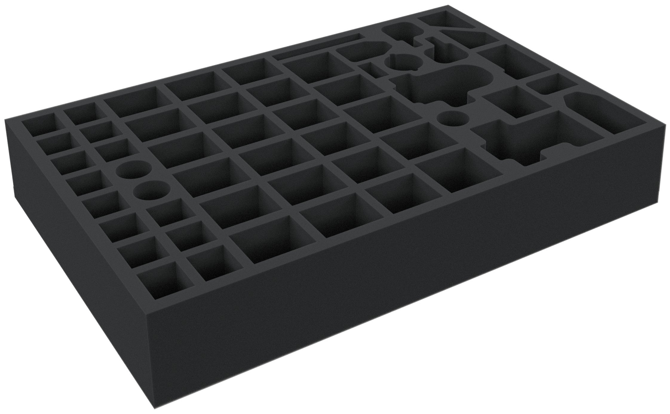 Protective foam tray for the Deathwatch Overkill board game box. Foam tray provides a great solution for protecting all figures and tokens from the original board game box. There is an additional 4 mm foam topper to protect the Overkill figures.