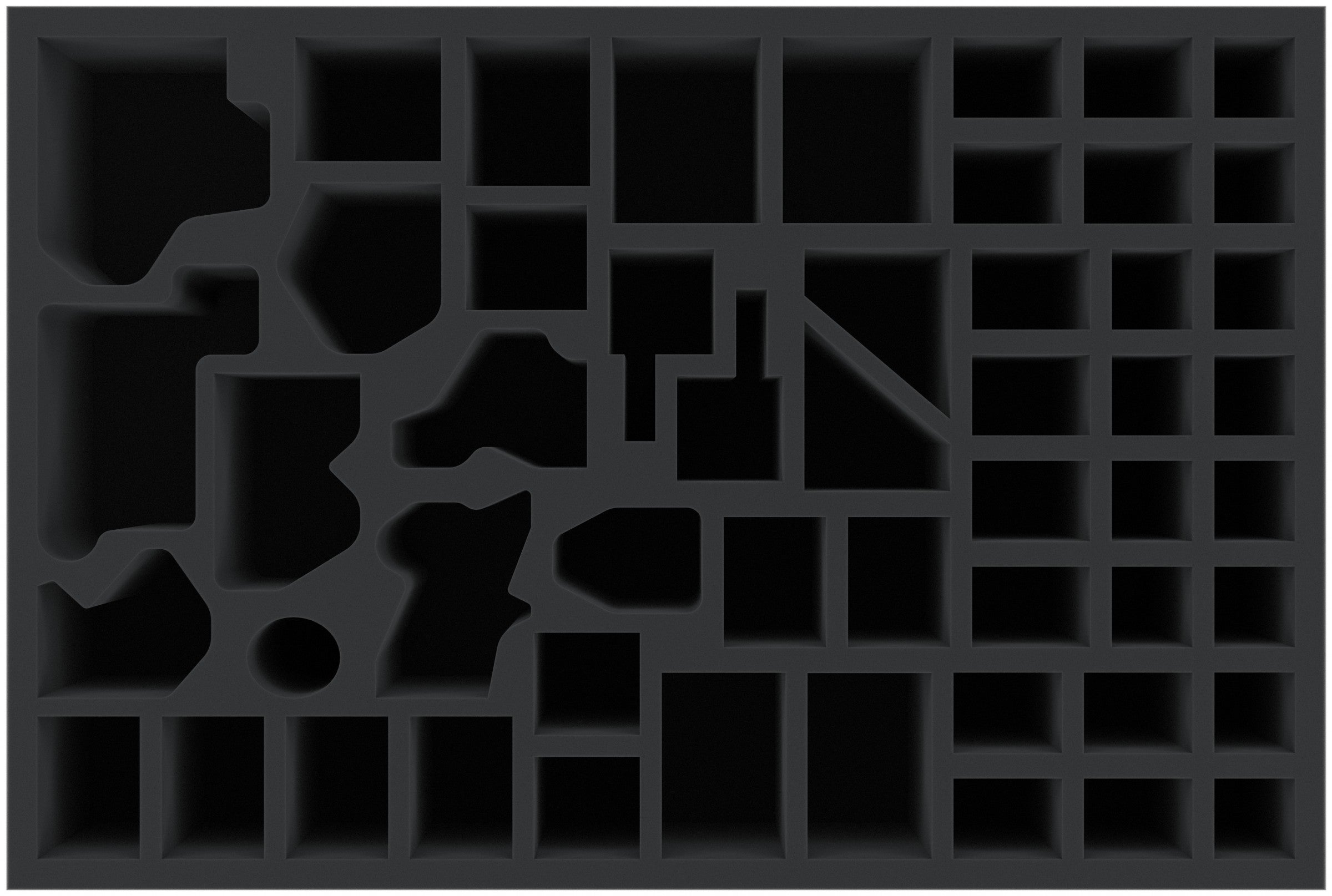 - 1 x 60 mm foam tray for the entire Warhammer Quest - Silver Tower miniatures with 52 compartments (item no. ATEZ060BO)