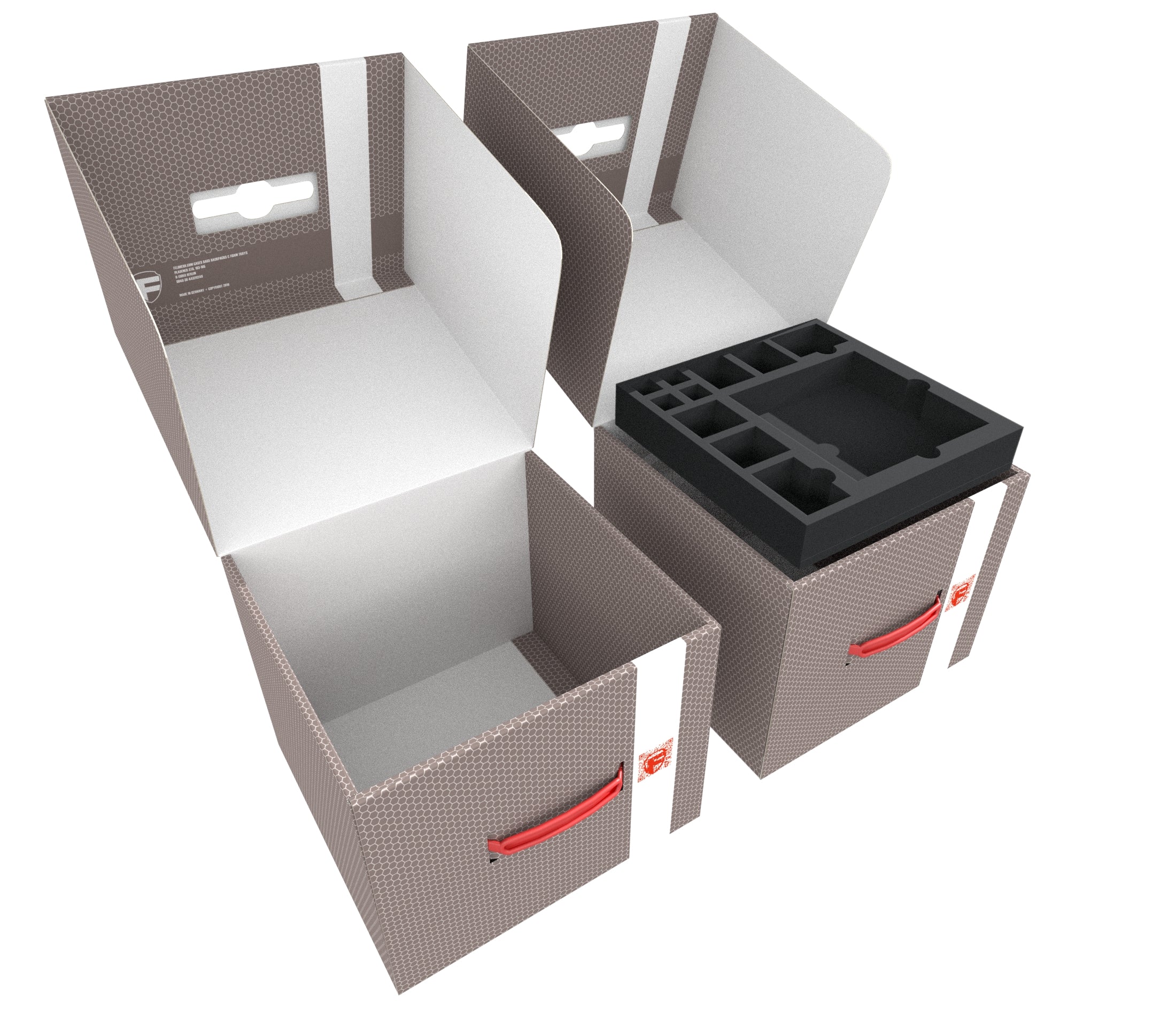 All miniatures, tokens, cards in sleeves and board tiles from the board game boxes fit in this set. The two high-quality storage boxes are filled with Feldherr foam specially designed for Mansions of Madness 2nd Edition and expansions.