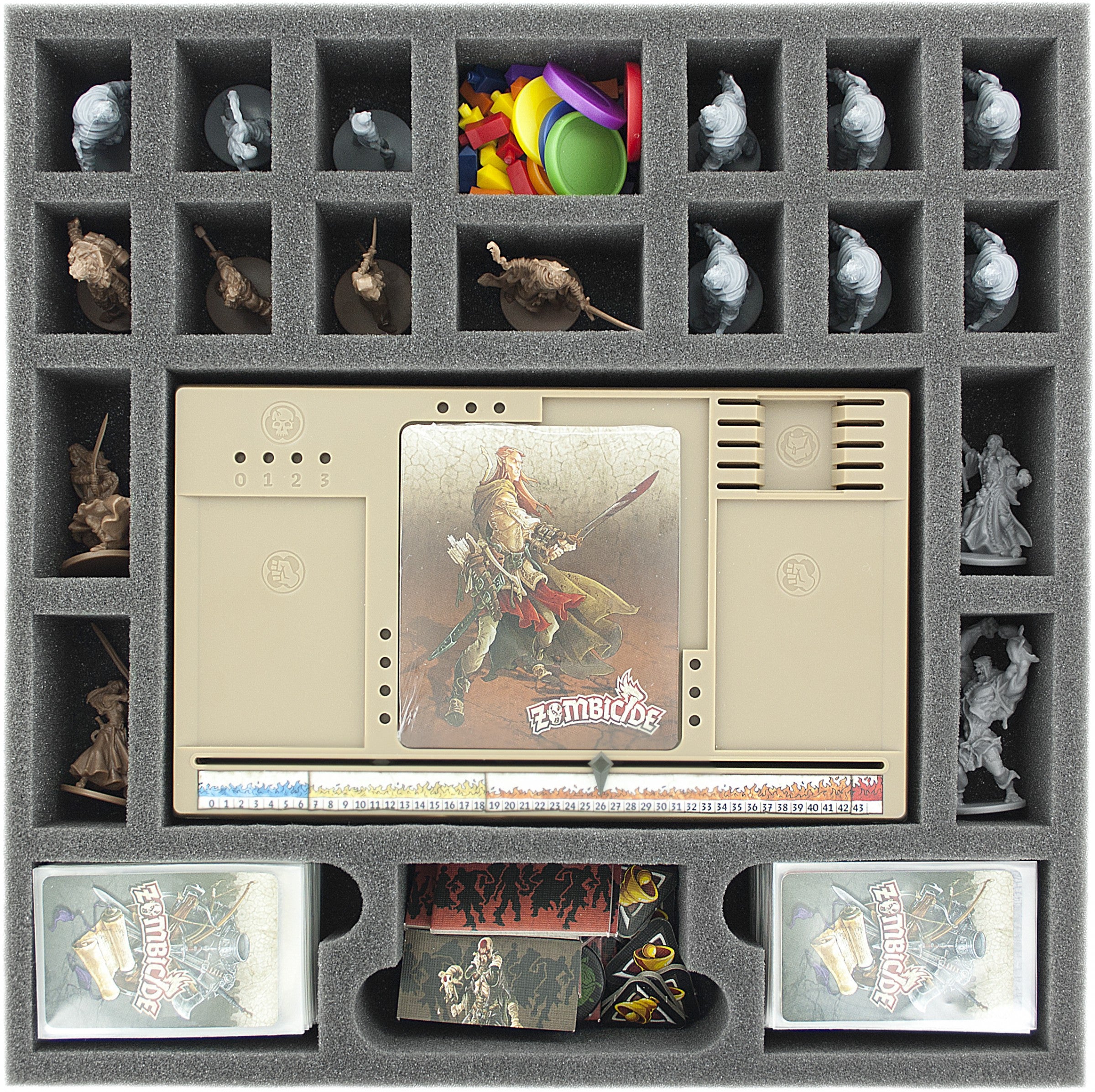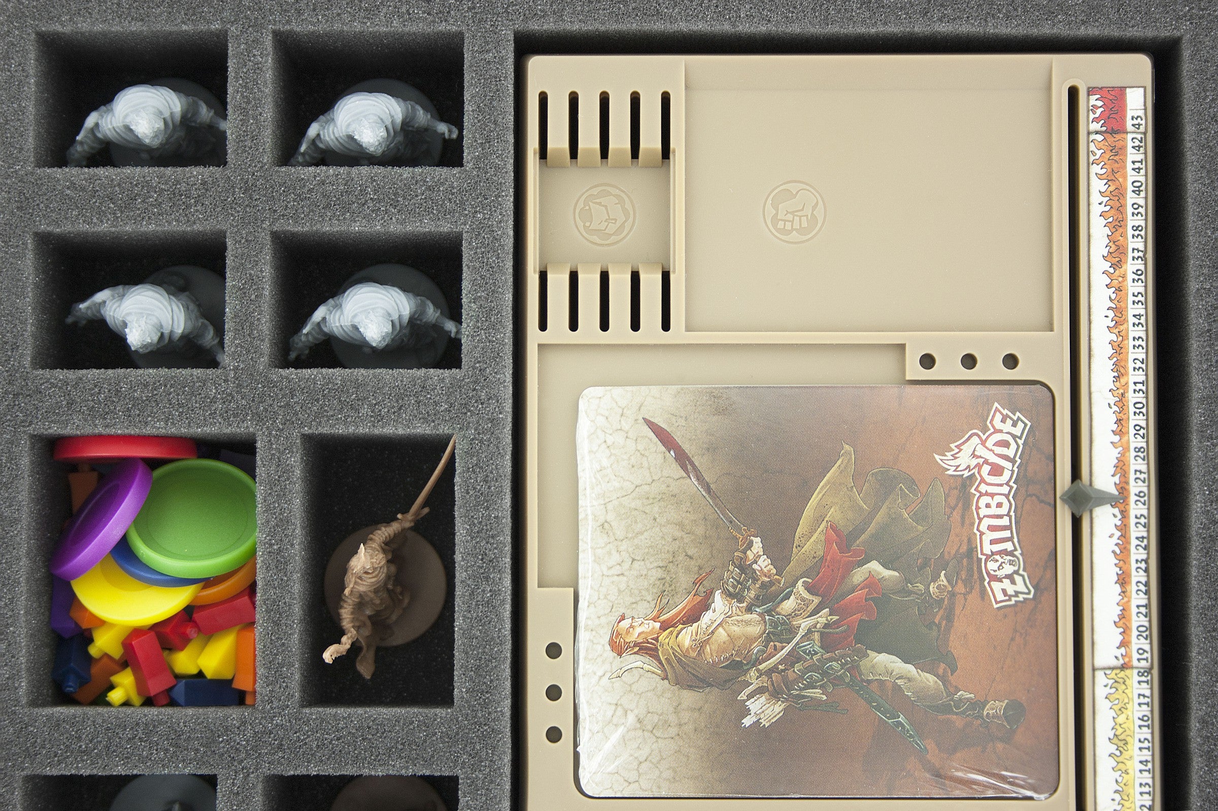 - 1 plateau en mousse de 35 mm (1,4 pouce) avec 54 fentes pour les boîtes de boadgame Zombicide