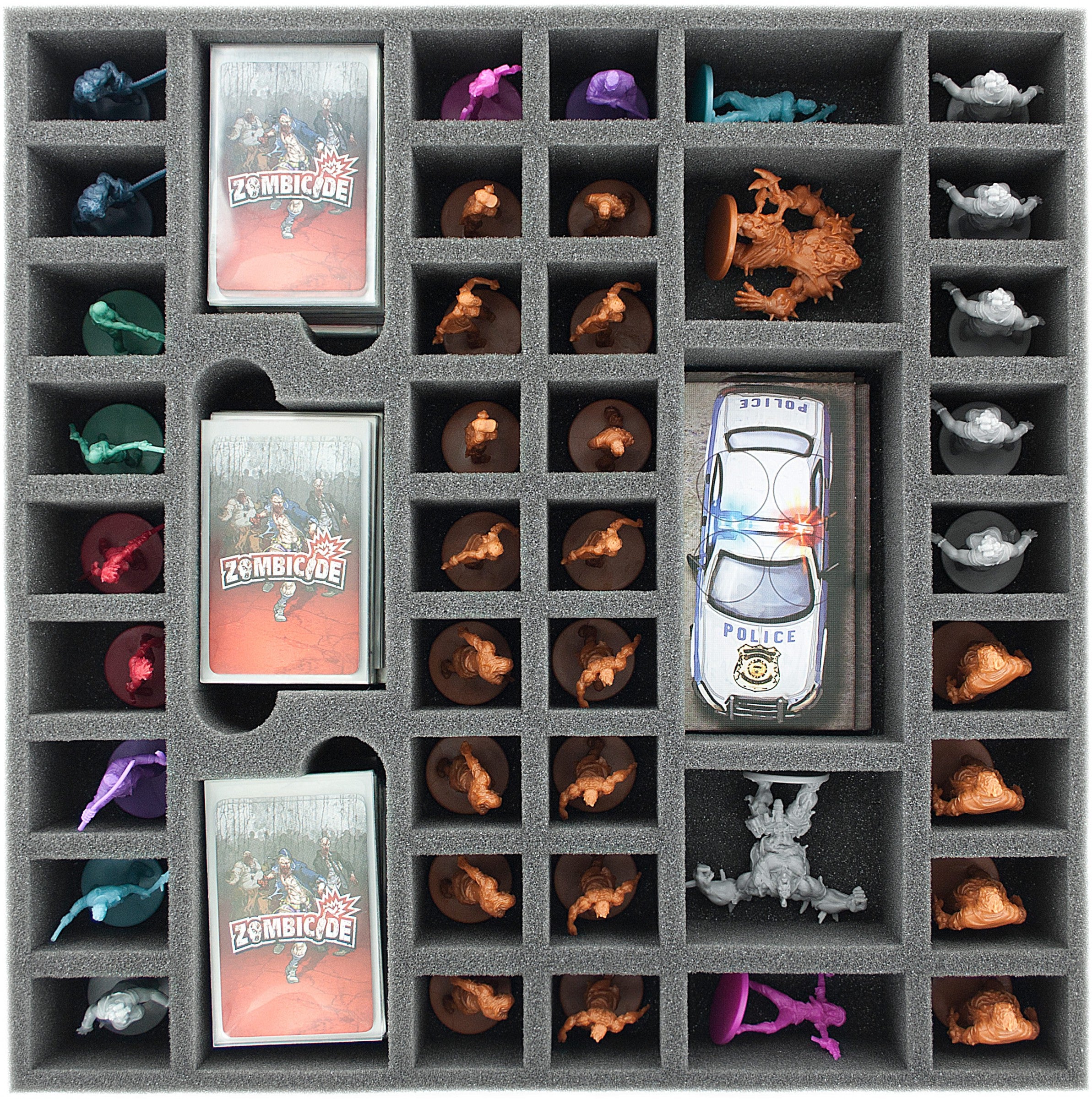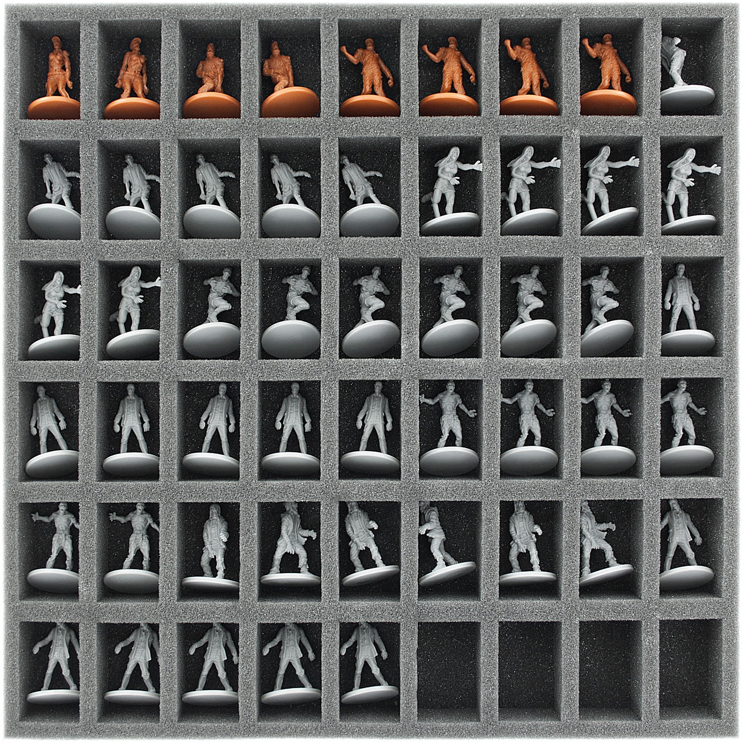 - 1 plateau en mousse de 35 mm (1,4 pouce) avec 54 fentes pour les boîtes de boadgame Zombicide