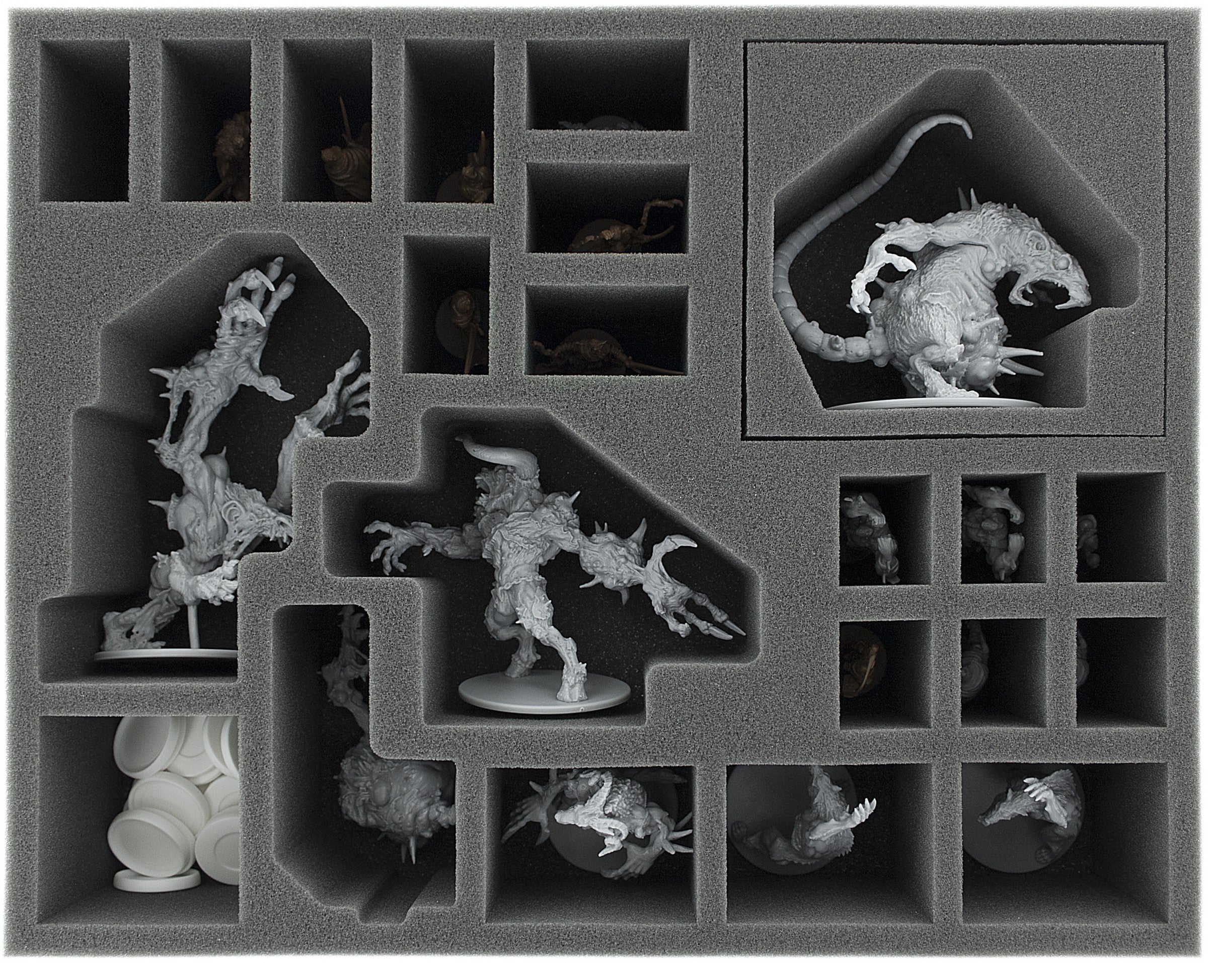 - 1 x 85 mm foam tray for Zombicide Black Plague Zombie Bosses and Abominarat (item no. FSFH085BO)