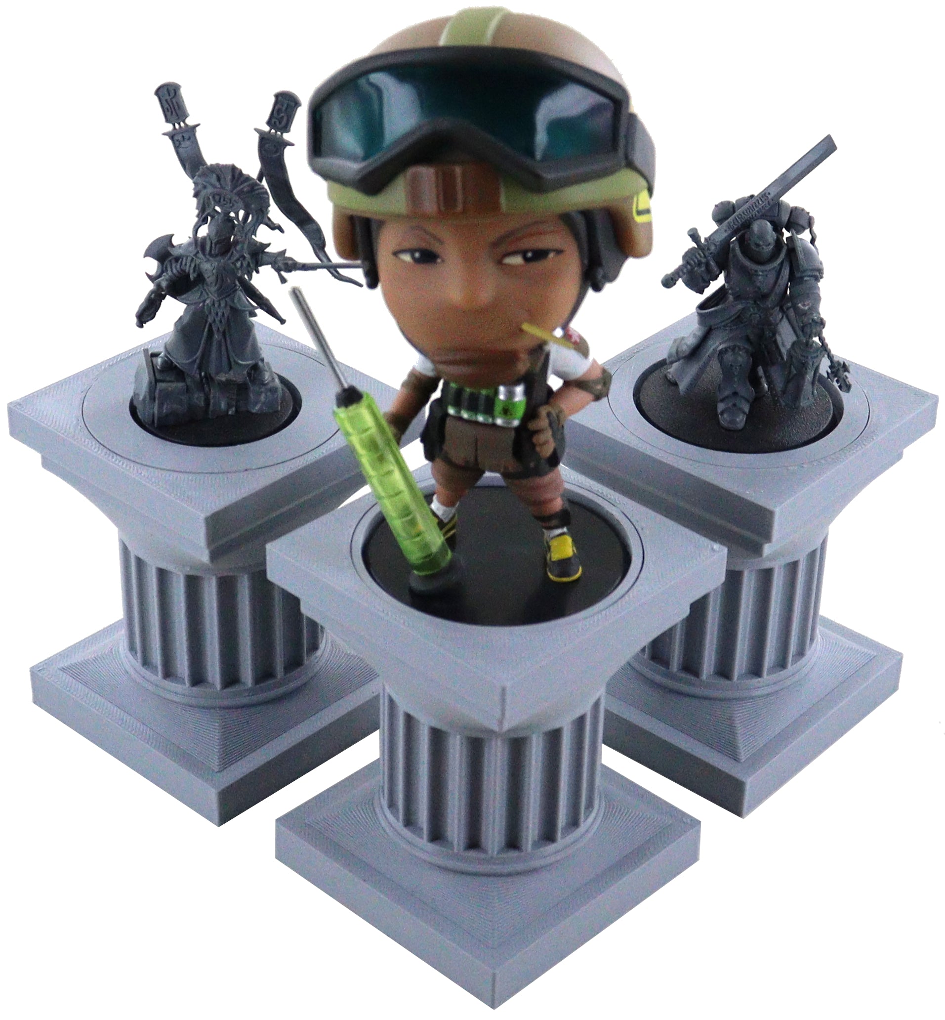 The pillars cut a fine figure on the shelf, drawing the spotlight on your figures. They can also be used as terrain pieces or as focal points for dioramas.