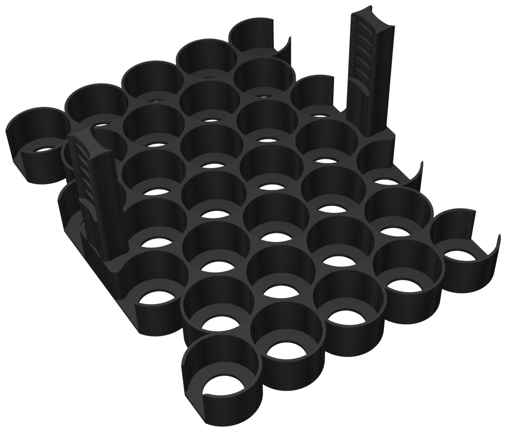 The Feldherr paint holder is therefore ideal for stowing 17 ml model color bottles from Vallejo, 18 ml Warpaint bottles from Army Painter and similar sized paint bottles.
