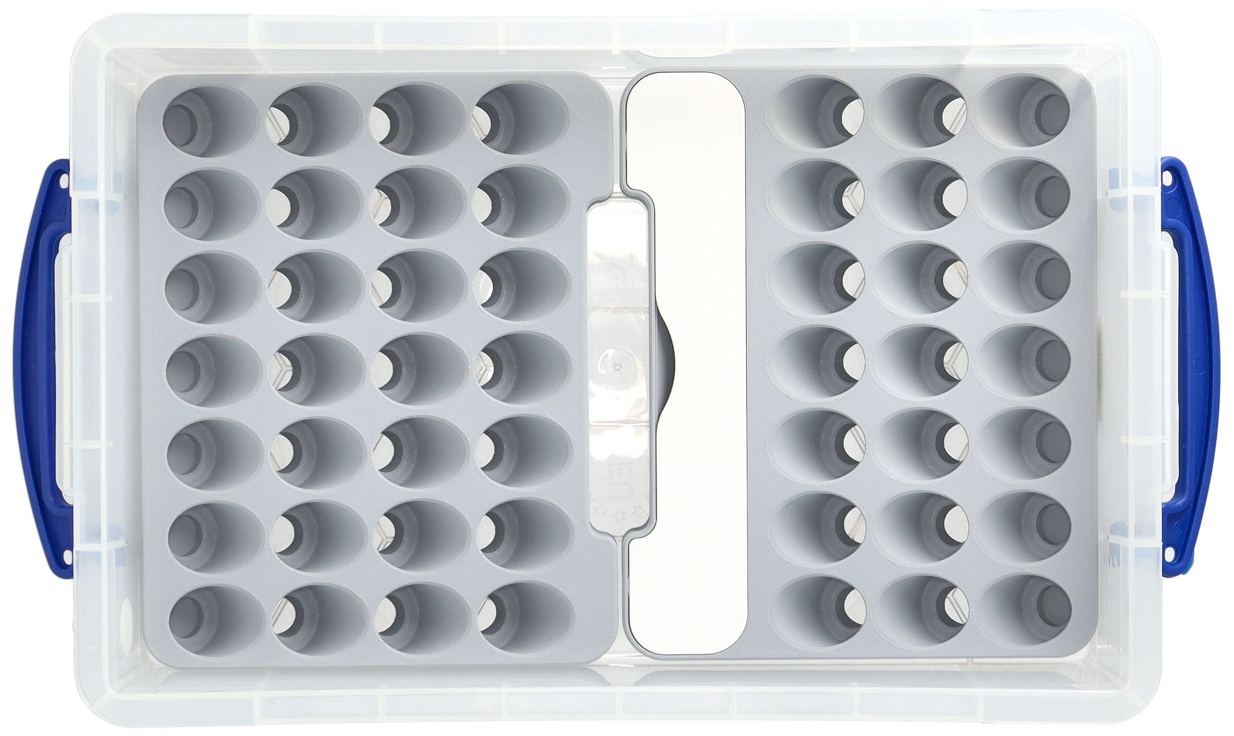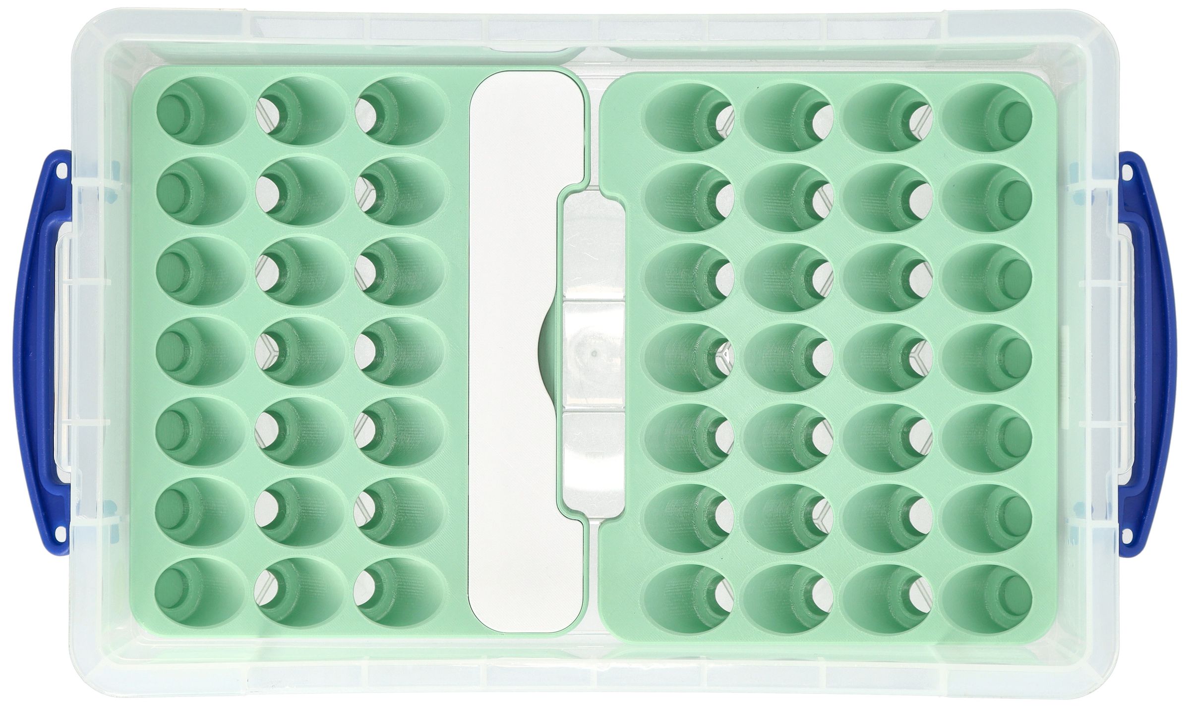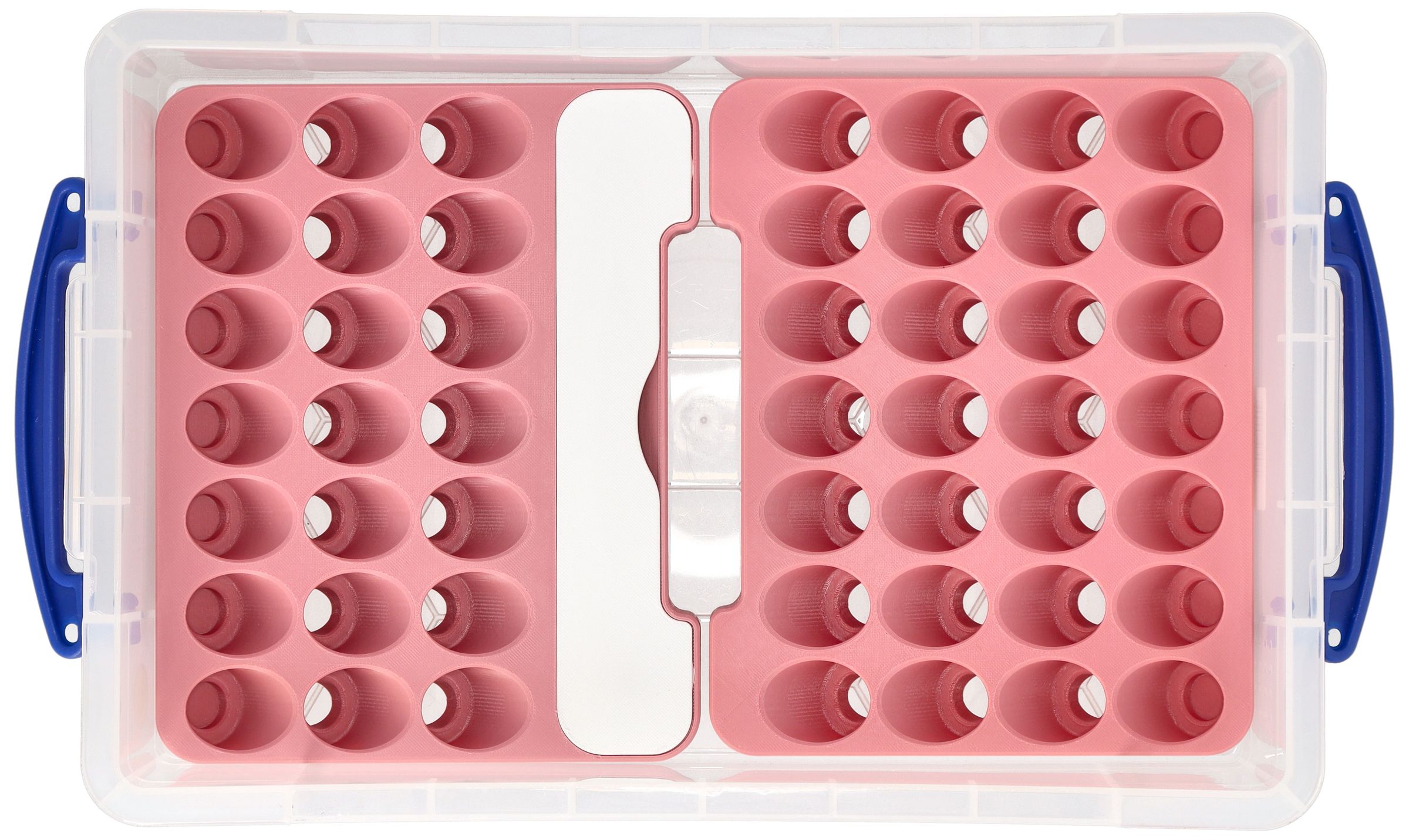 - An insert with 28 round compartments for color bottles