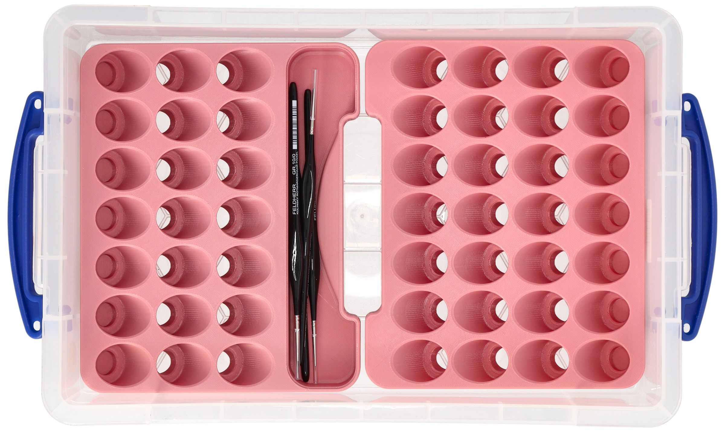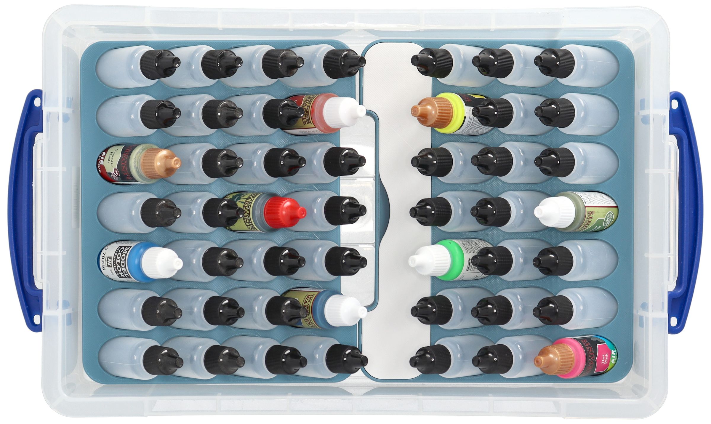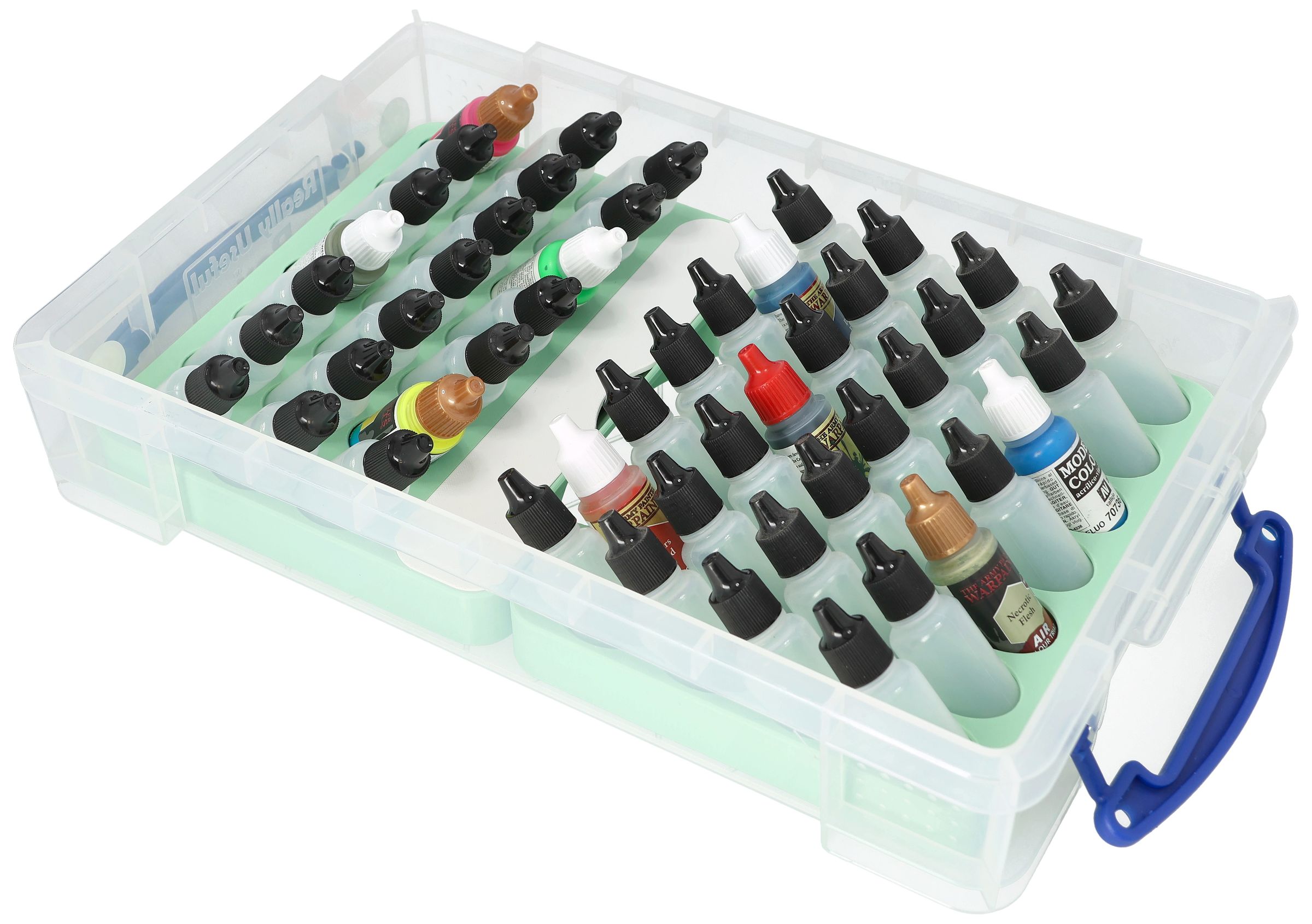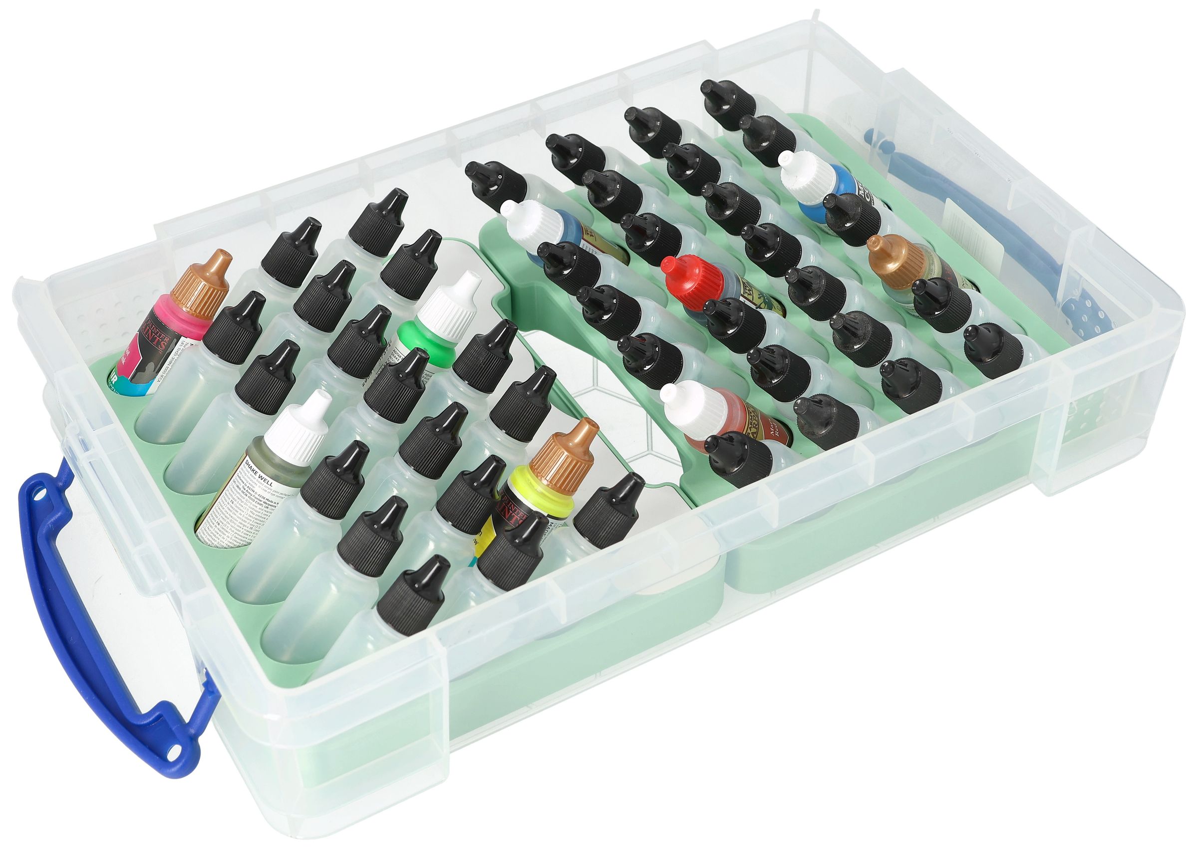 - An insert with 21 compartments for paint bottles and a separate accessory compartment - perfect for brushes, small parts, or bits