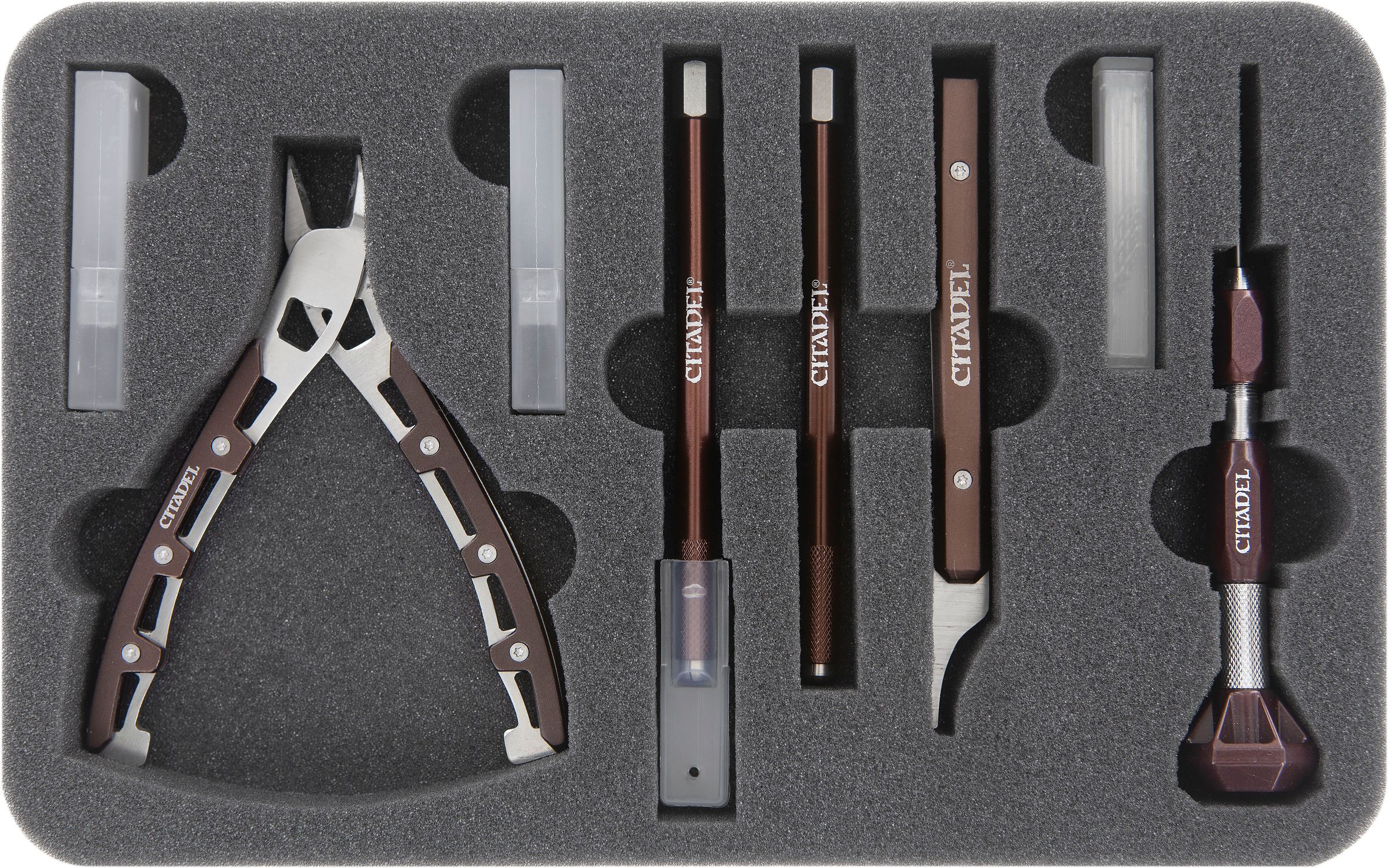 Two further foam trays provide space for your Citadel tools. There are custom compartments for the following tools: