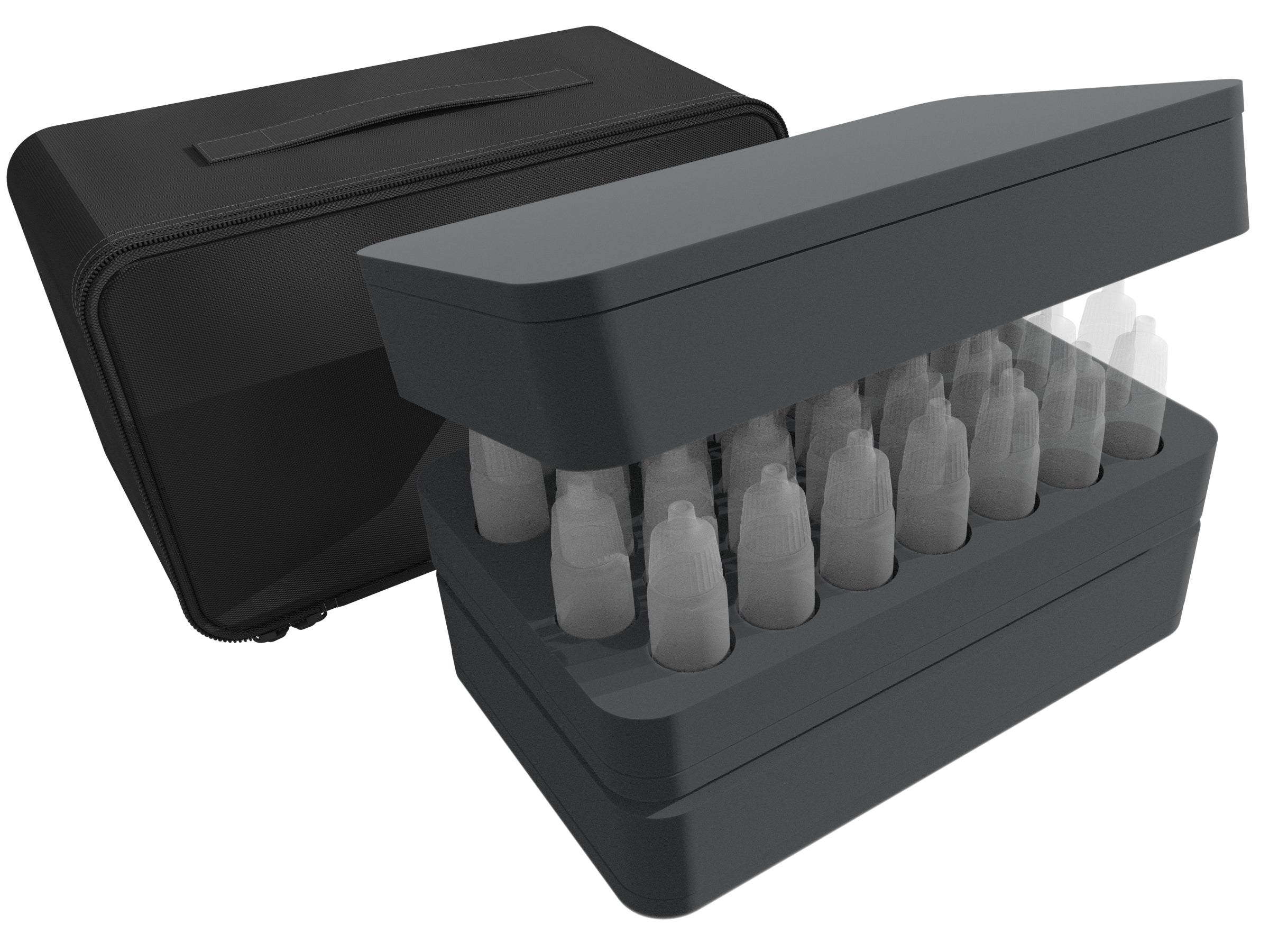 Up to 37 model color bottles can be stored here in a clearly arranged and transportable way. Thanks to the lightweight material, the foam insert is a wonderful addition to your hobby bag.
