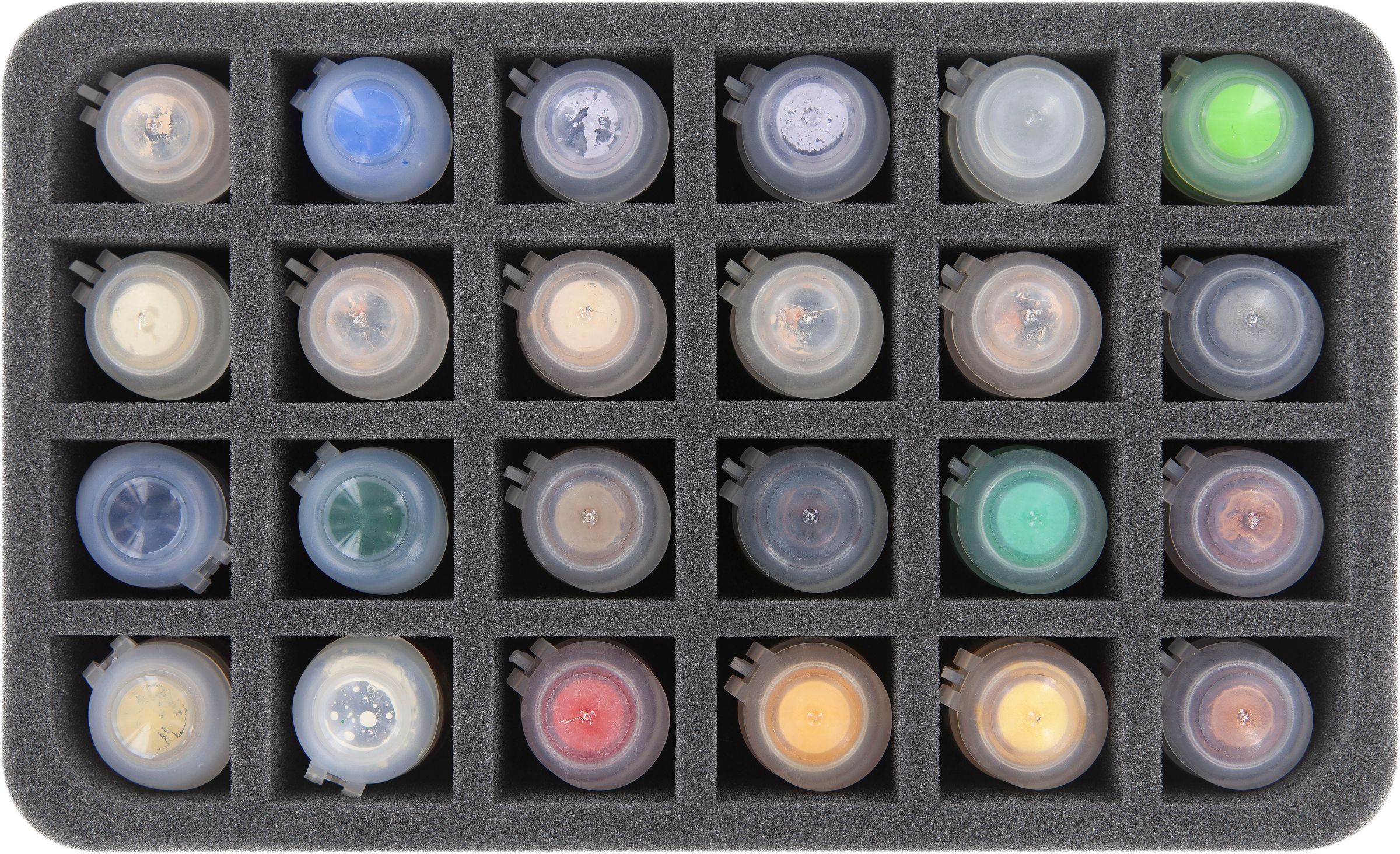 Your miniatures are neatly stowed away, but the paints still stand around disorganized? You are looking for a solution to safely transport the paint pots? Then this foam tray is for you.
