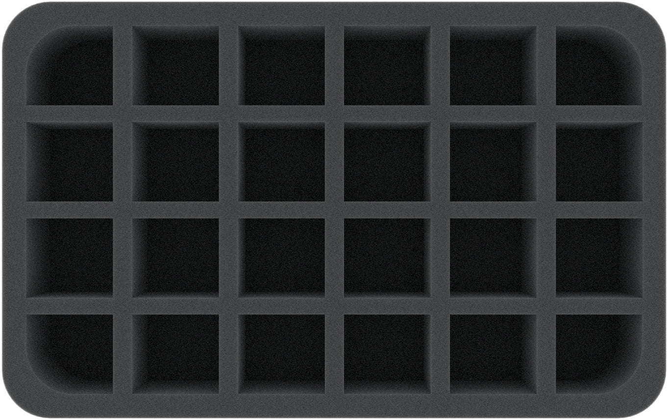 Up to 24 Citadel paint pots in 12 ml size can be stored here clearly arranged and portable. Thanks to the lightweight material, this foam insert is a wonderful addition to your hobby case.