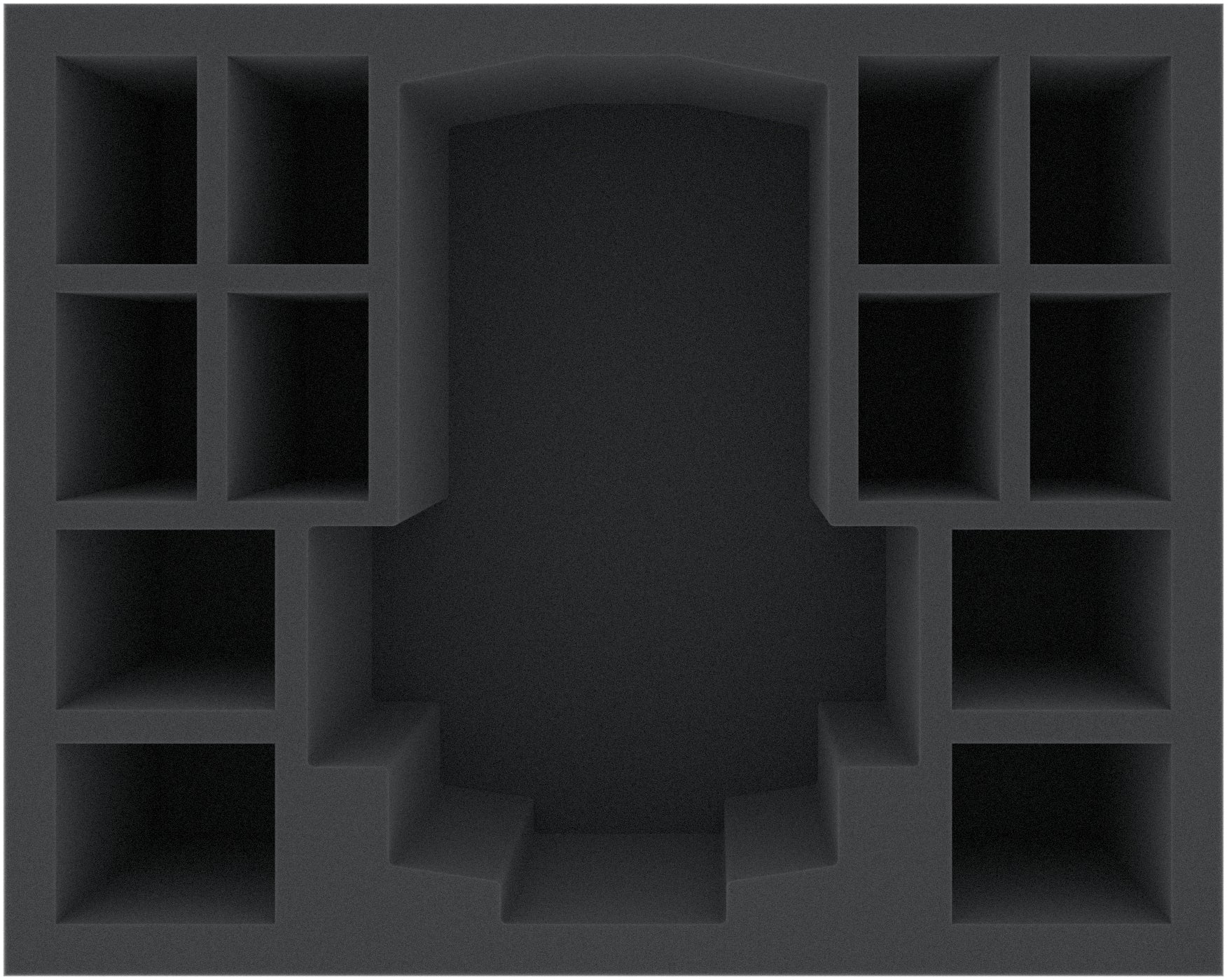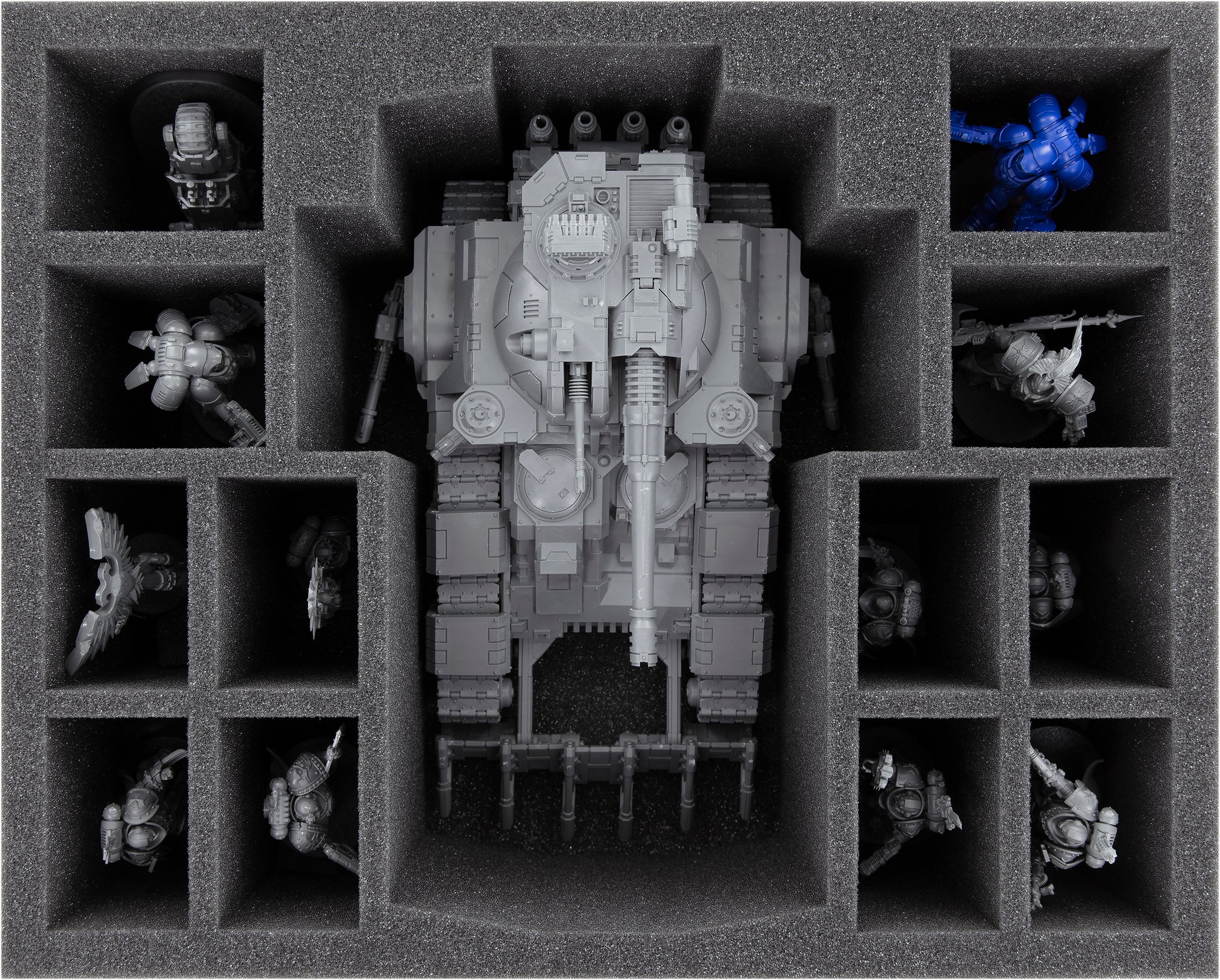 The large compartment on this Feldherr Full-Size foam tray houses the tank with the weaponry of your choice. Whether you equip your tank with a Kratos battle cannon, a melta blast-gun, or a volkite cardanelle, it will fit into this custom Feldherr foam tray. Precisely tailored to fit the Kratos, the large compartment ensures that your model is securely packed. The hull-mounted cannons remain just as intact during transport as the dome weapons.