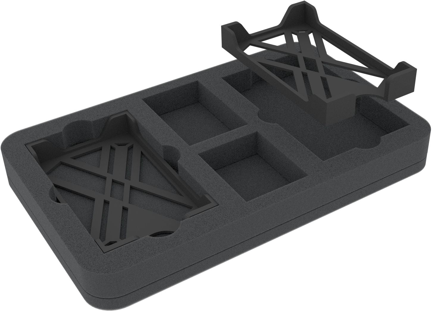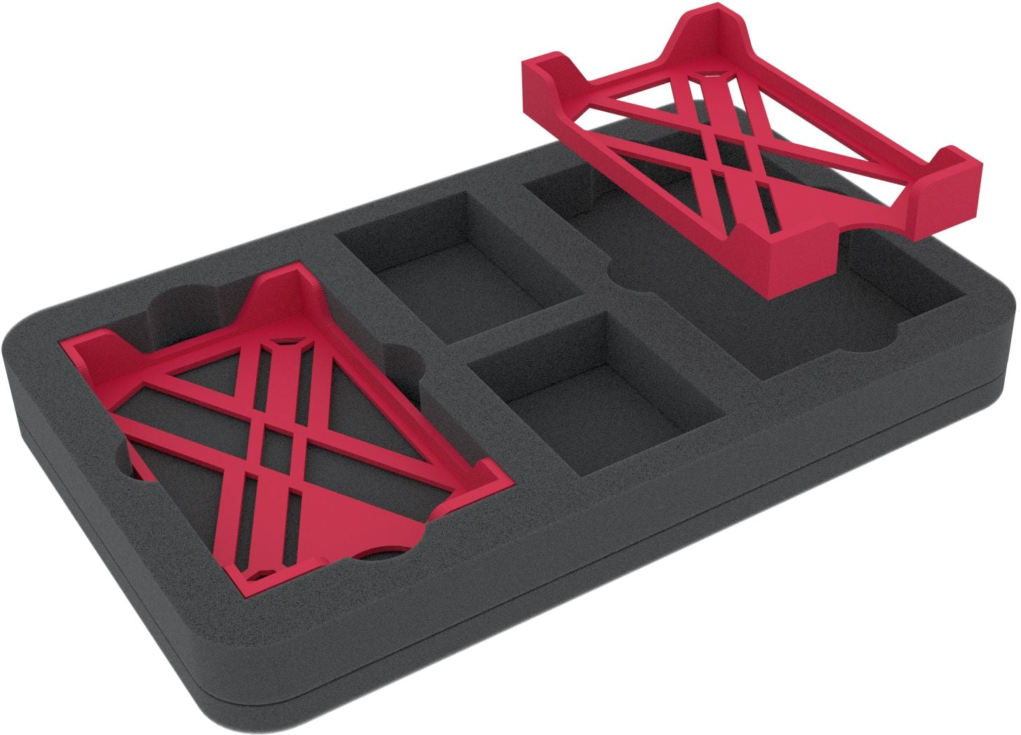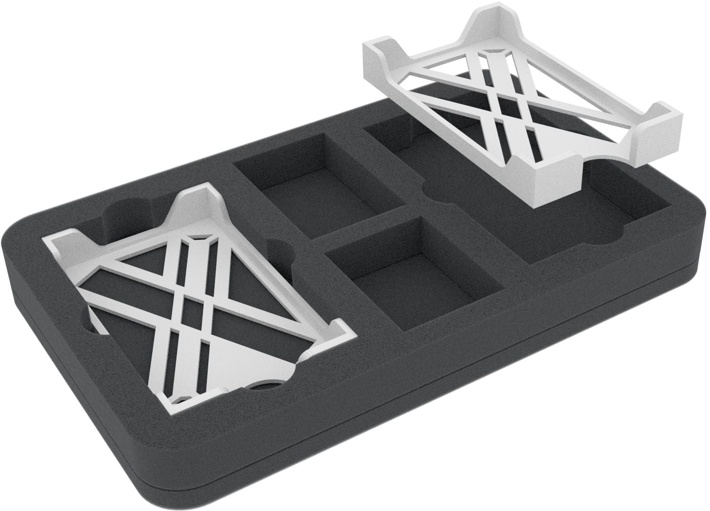 A bitter civil war rages on in a galaxy far, far away. Armies command countless types of spacecraft. To help you keep track of your armada, we've introduced this Feldherr Half-Size foam set with matching card holders. This way, you can neatly organize your ship cards, and they are ready to use.