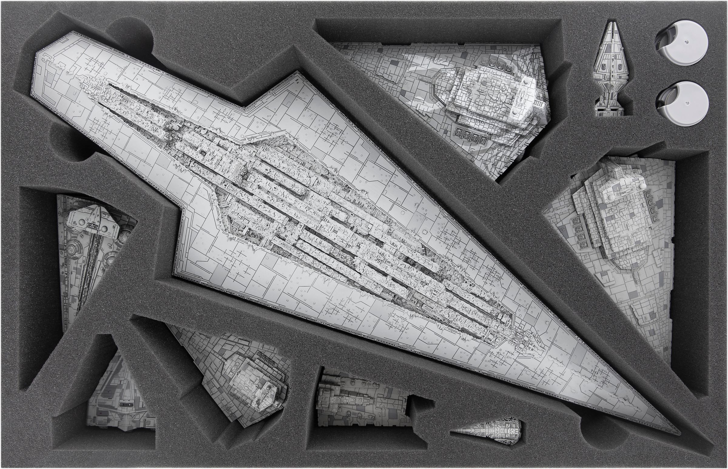 - 1 foam tray for one Super Star Destroyer + 8 ships and dials (DMMEQA070BO)
