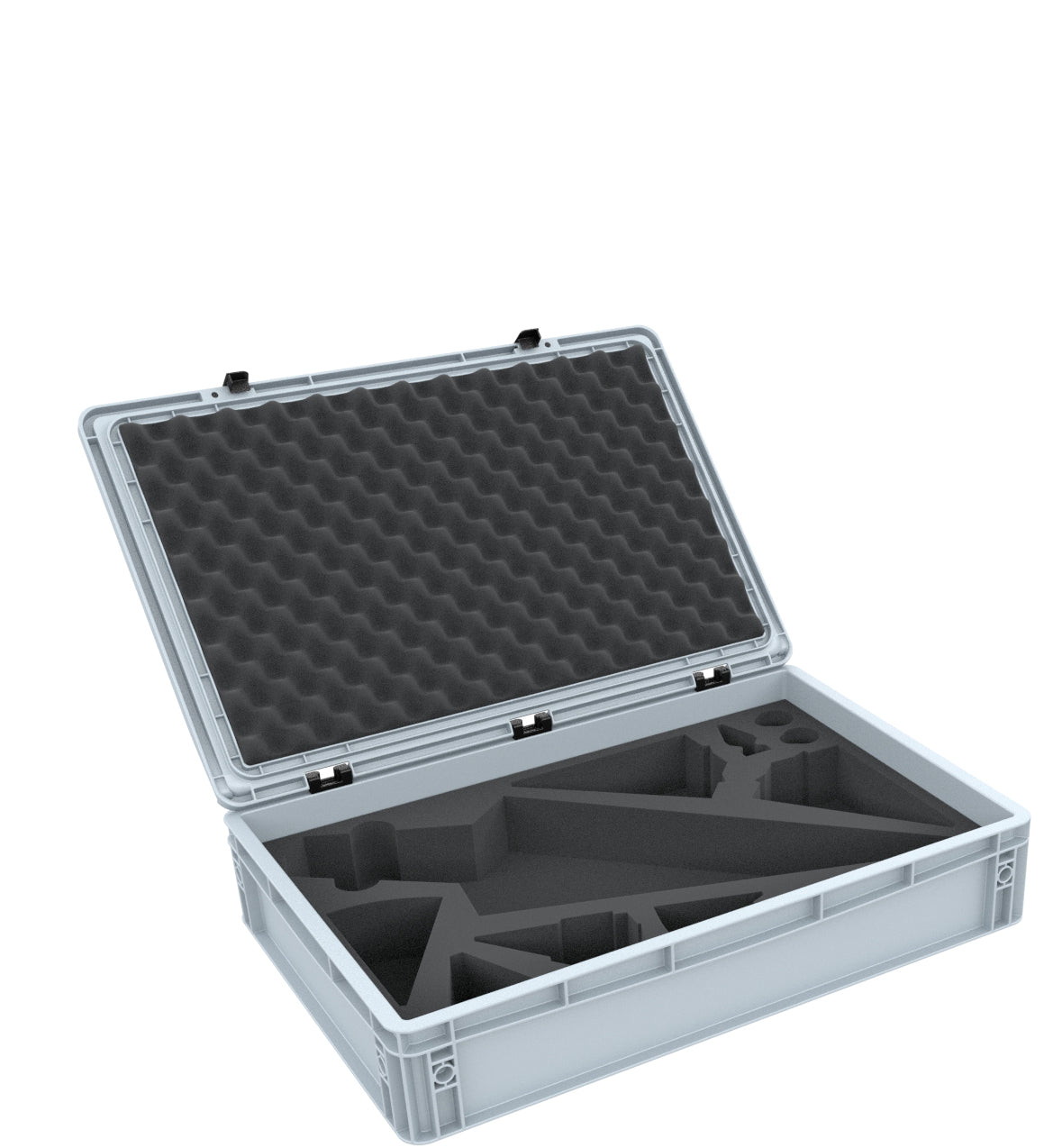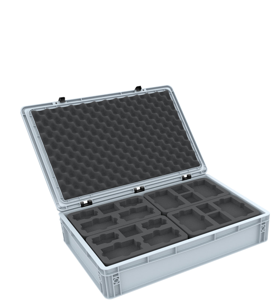 The package is rounded off with the matching convoluted foam topper. Thanks to the self-adhesive foil on the back, you can glue it into the inside of the hinged lid. This ensures that everything is securely packed in foam all around.